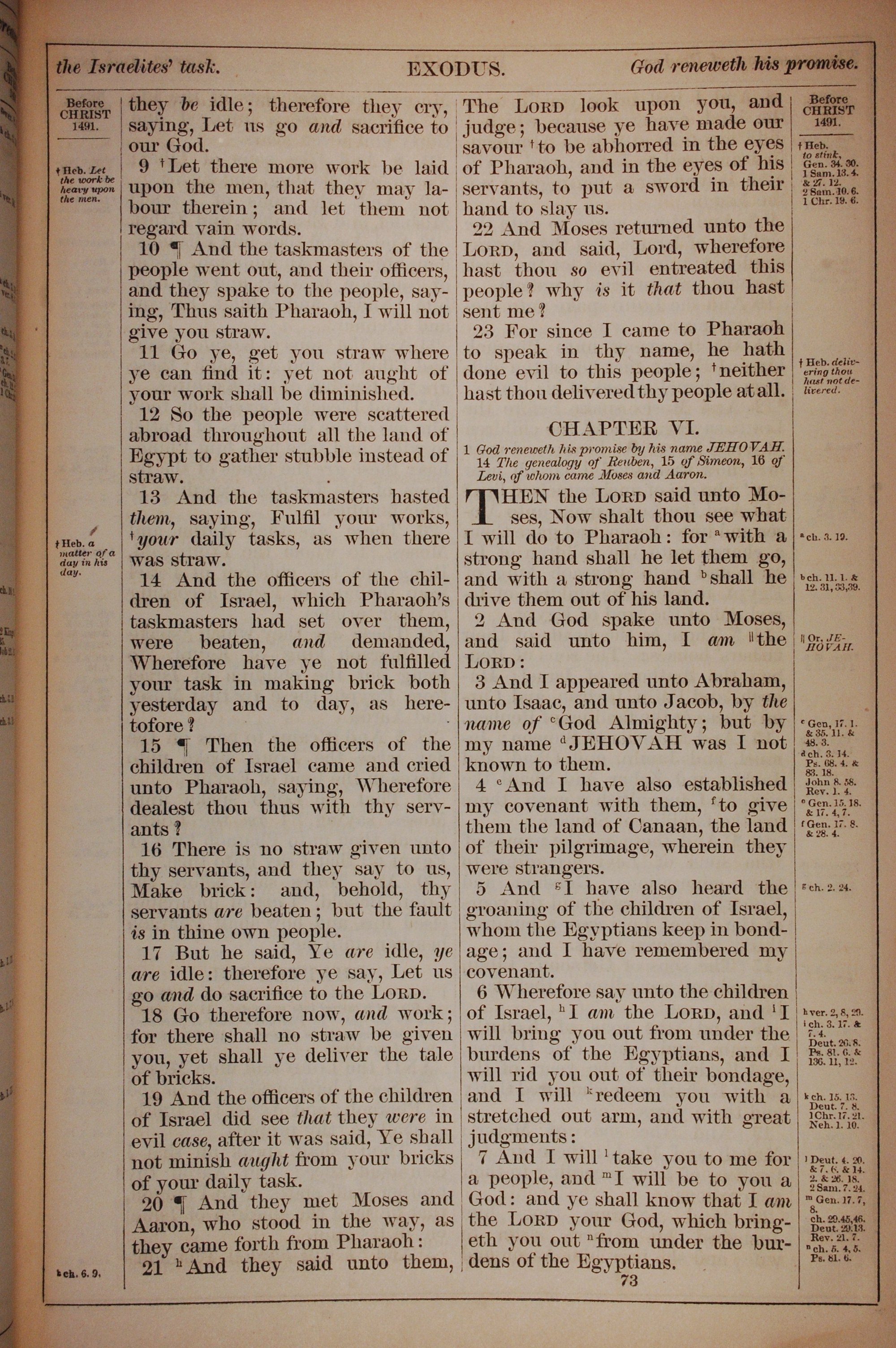 1882年Holy Bible 出埃及記 5 章 9 節到 6 章 7 節