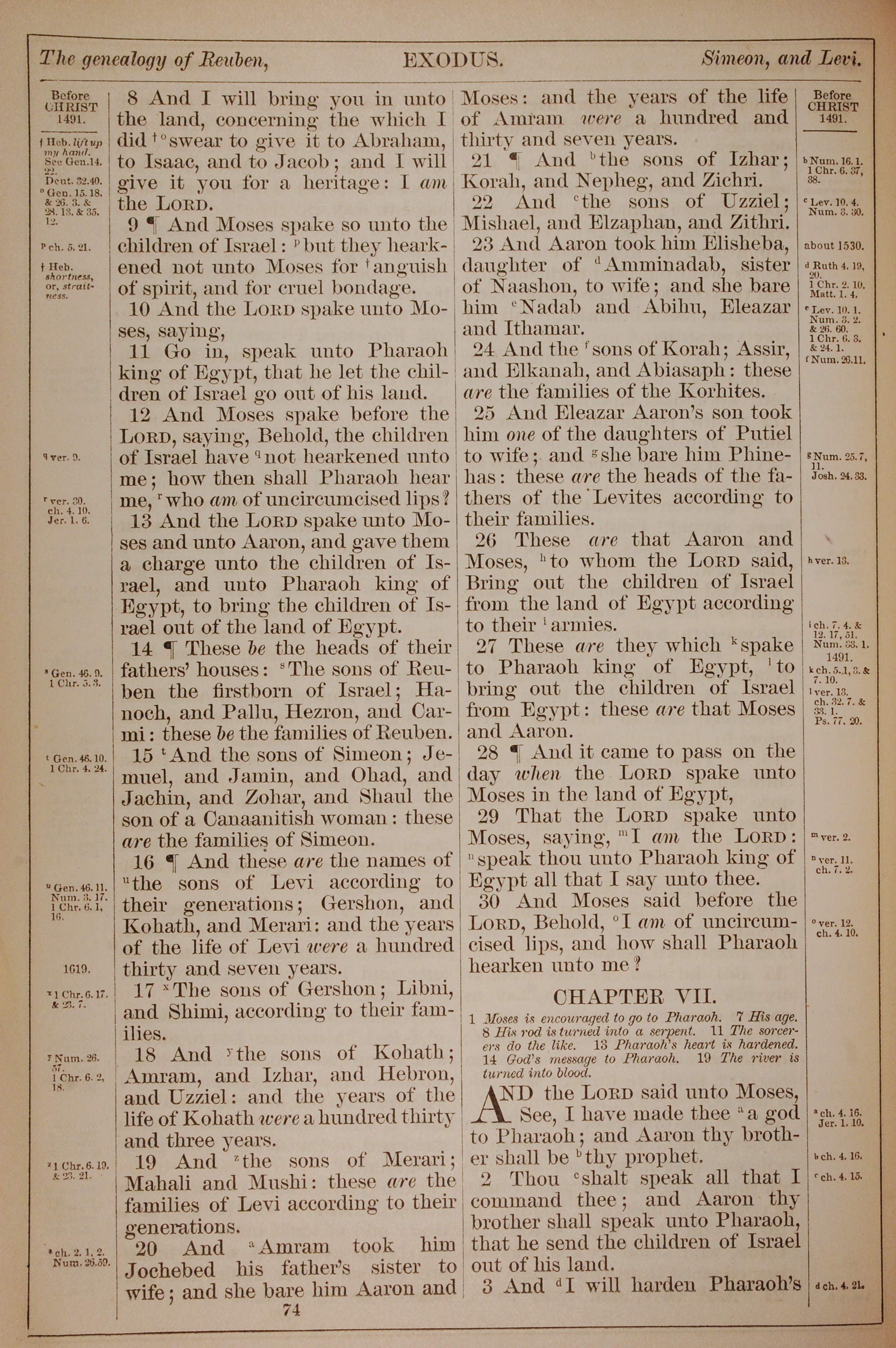 1882年Holy Bible 出埃及記 6 章 8 節到 7 章 3 節