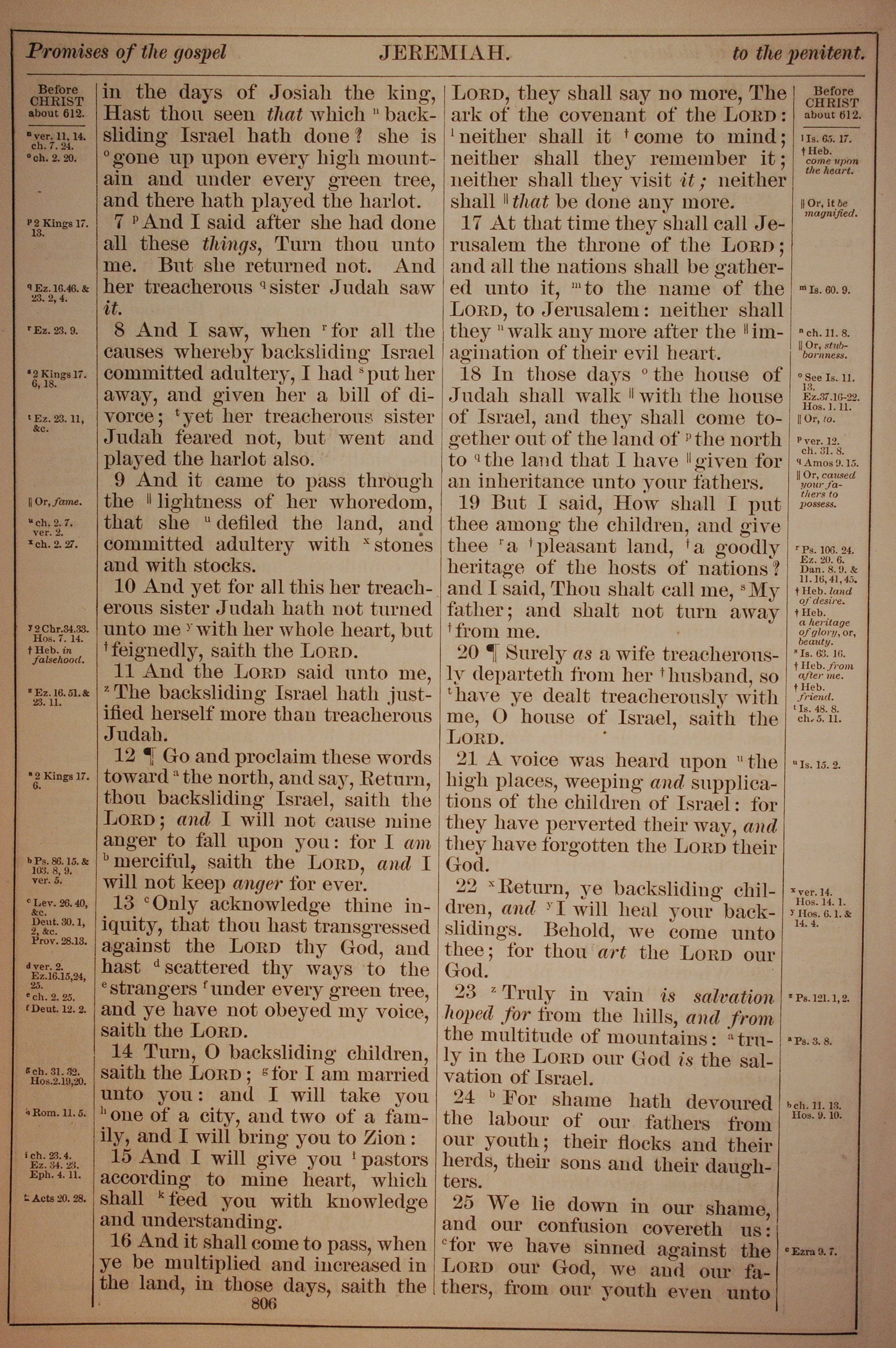 1882年Holy Bible 耶利米書 3 章 6 節到 3 章 25 節