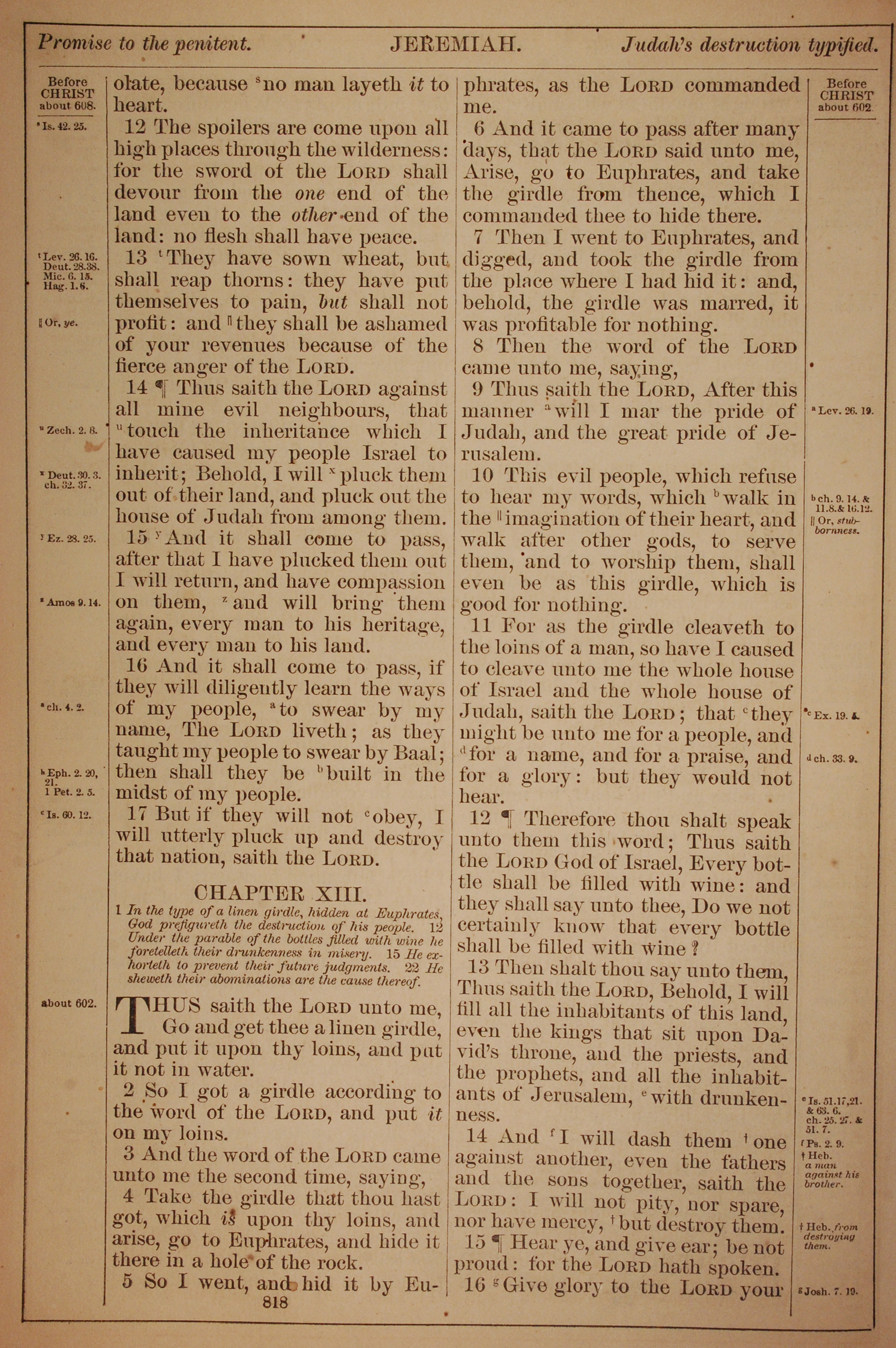 1882年Holy Bible 耶利米書 12 章 12 節到 13 章 16 節