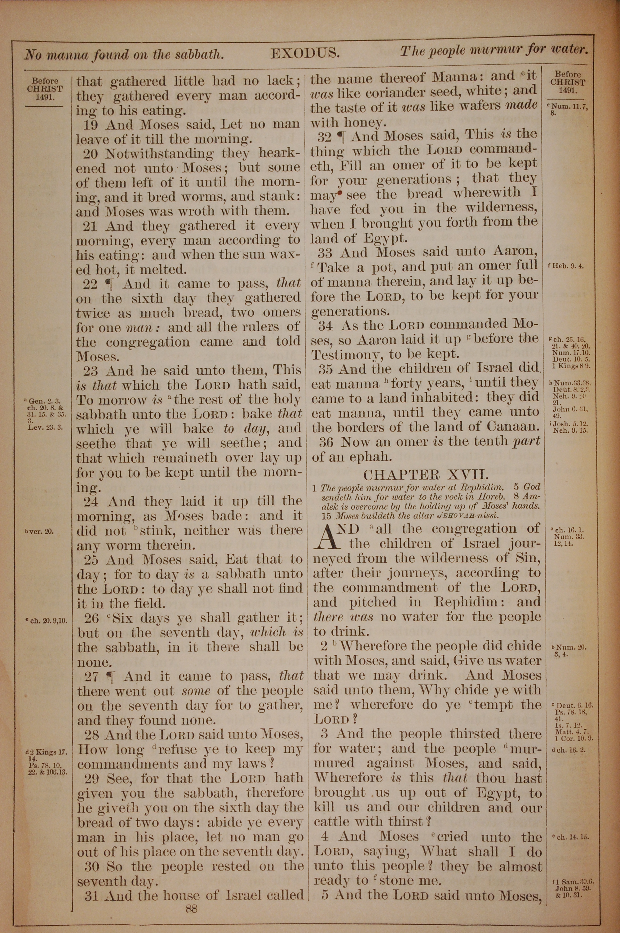 1882年Holy Bible 出埃及記 16 章 19 節到 17 章 4 節