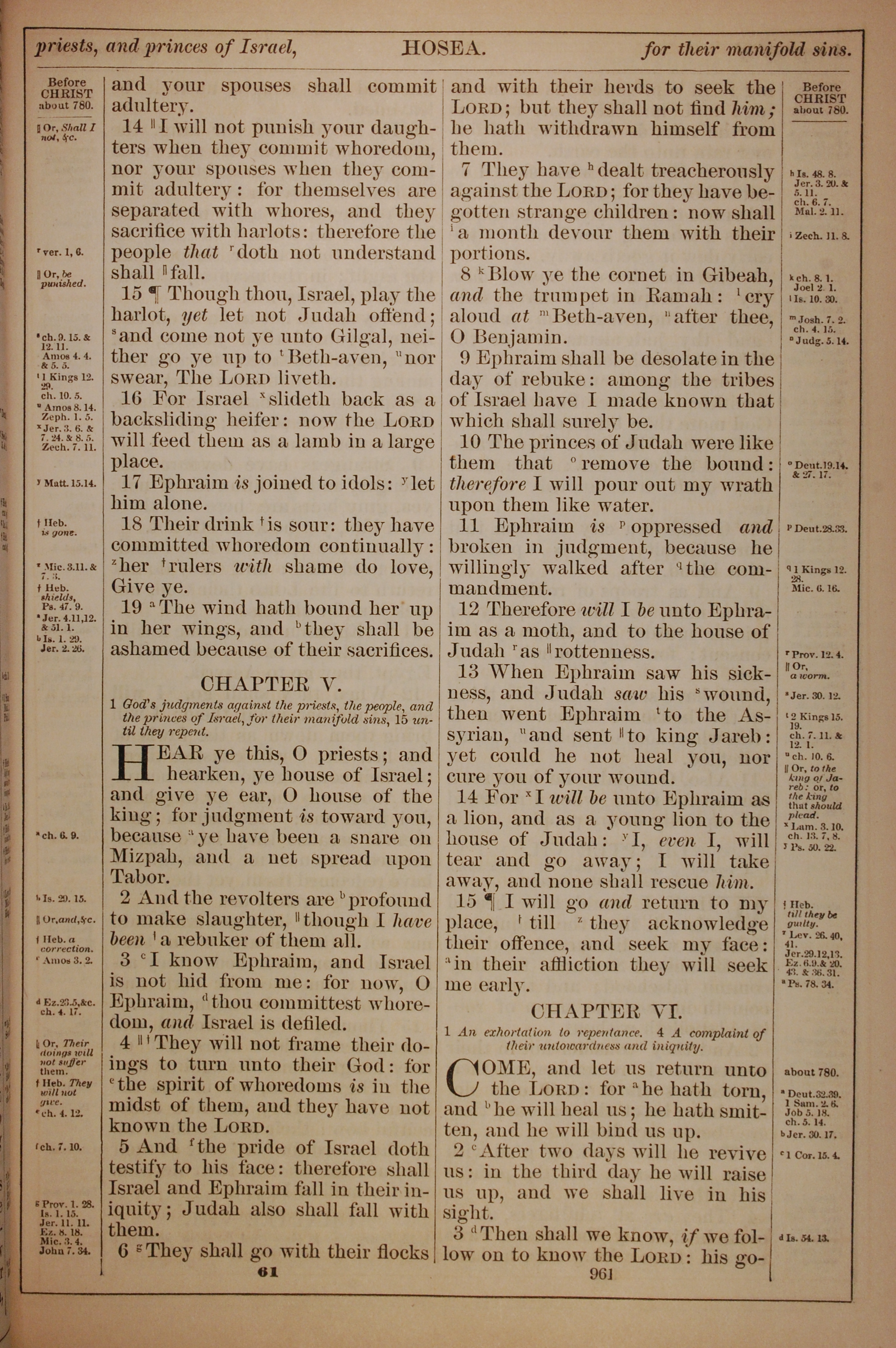 1882年Holy Bible 何西阿書 4 章 14 節到 6 章 3 節