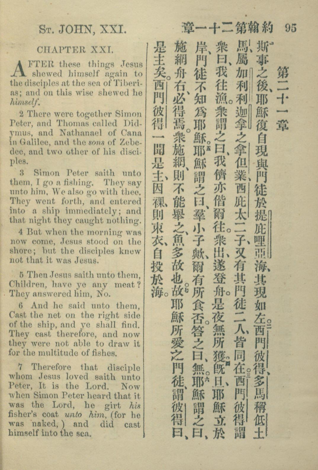 1883年約翰傳福音書 約翰福音 21 章 1 節到 21 章 7 節