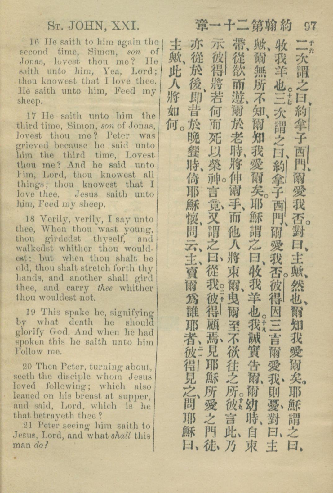 1883年約翰傳福音書 約翰福音 21 章 16 節到 21 章 21 節