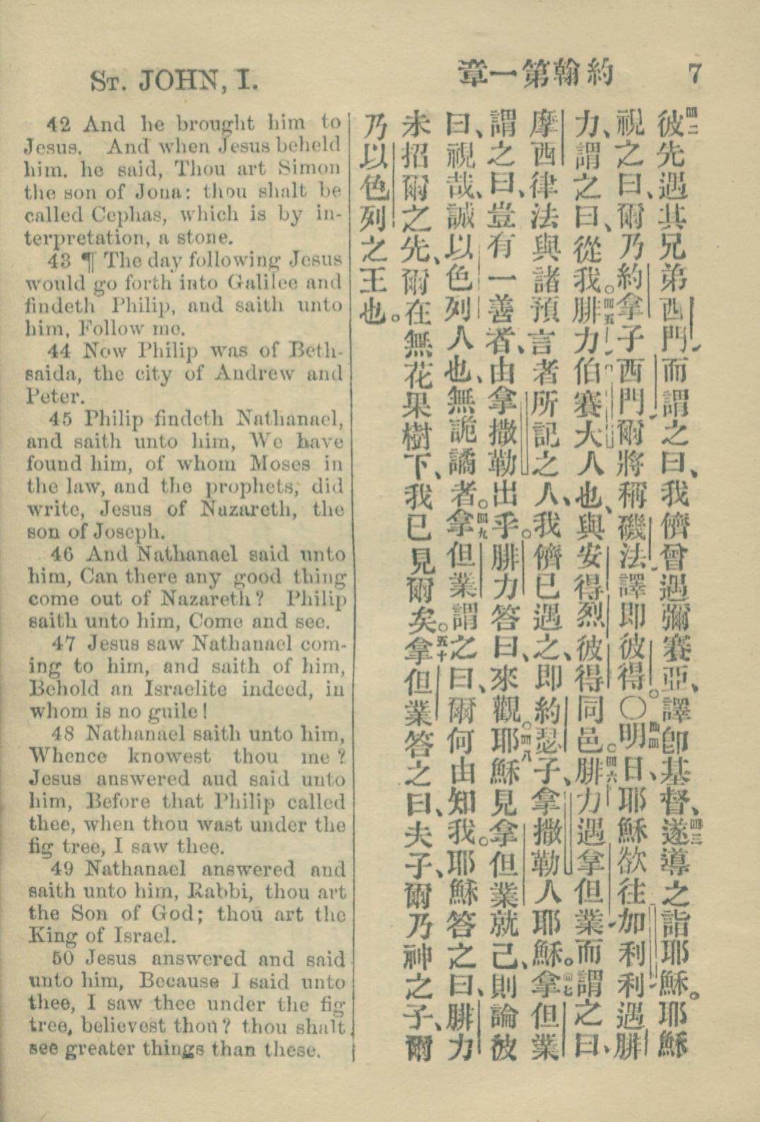 1883年約翰傳福音書 約翰福音 1 章 42 節到 1 章 50 節