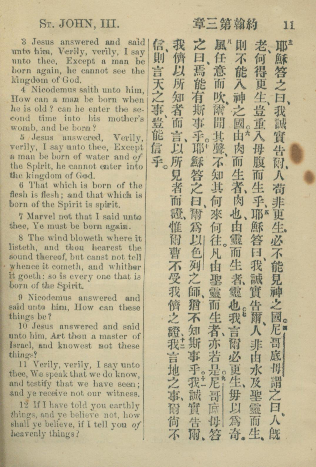 1883年約翰傳福音書 約翰福音 3 章 3 節到 3 章 12 節
