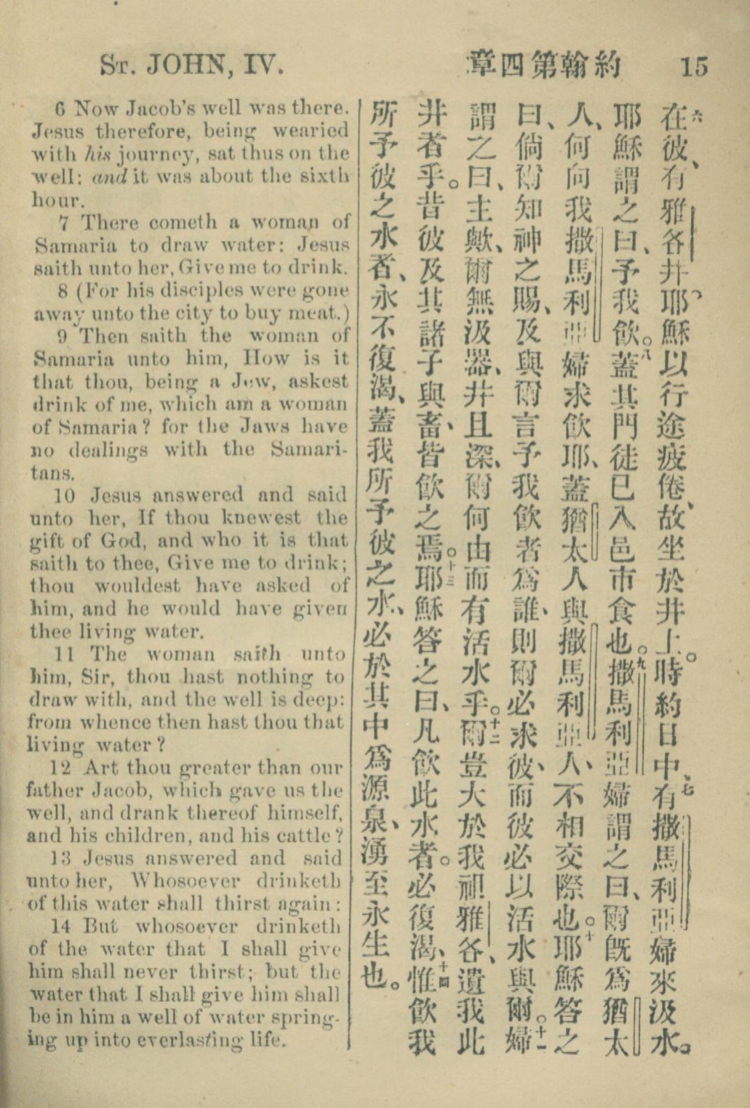 1883年約翰傳福音書 約翰福音 4 章 6 節到 4 章 14 節