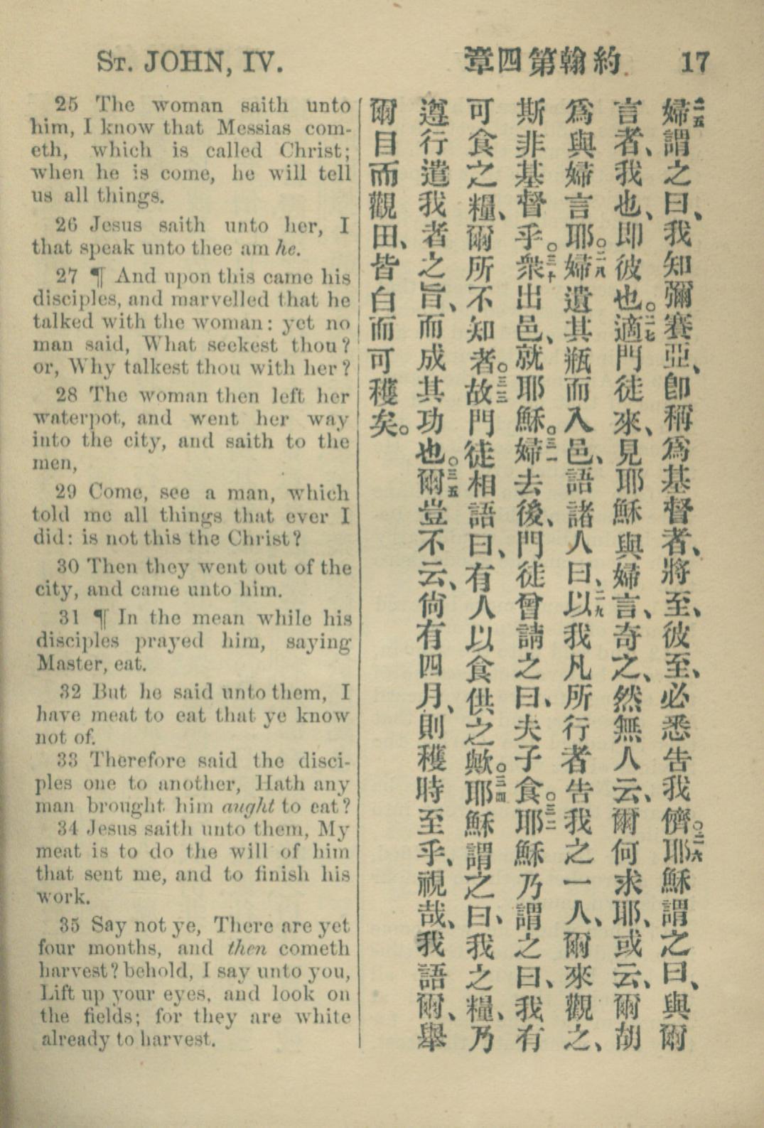 1883年約翰傳福音書 約翰福音 4 章 25 節到 4 章 35 節