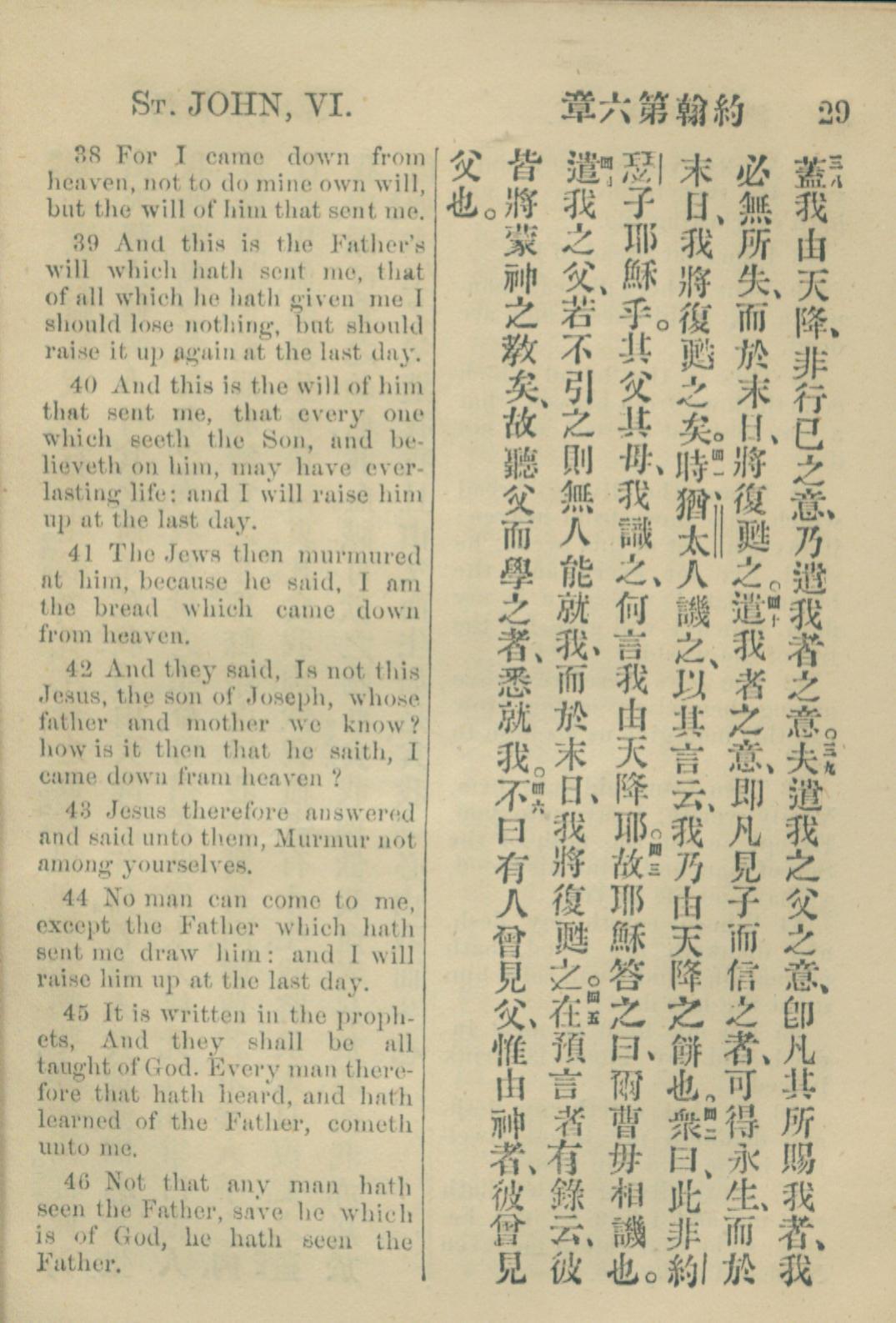 1883年約翰傳福音書 約翰福音 6 章 38 節到 6 章 46 節