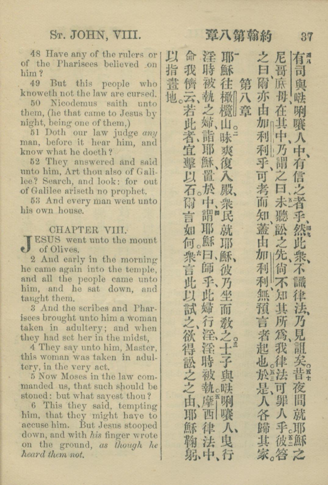 1883年約翰傳福音書 約翰福音 7 章 48 節到 8 章 6 節