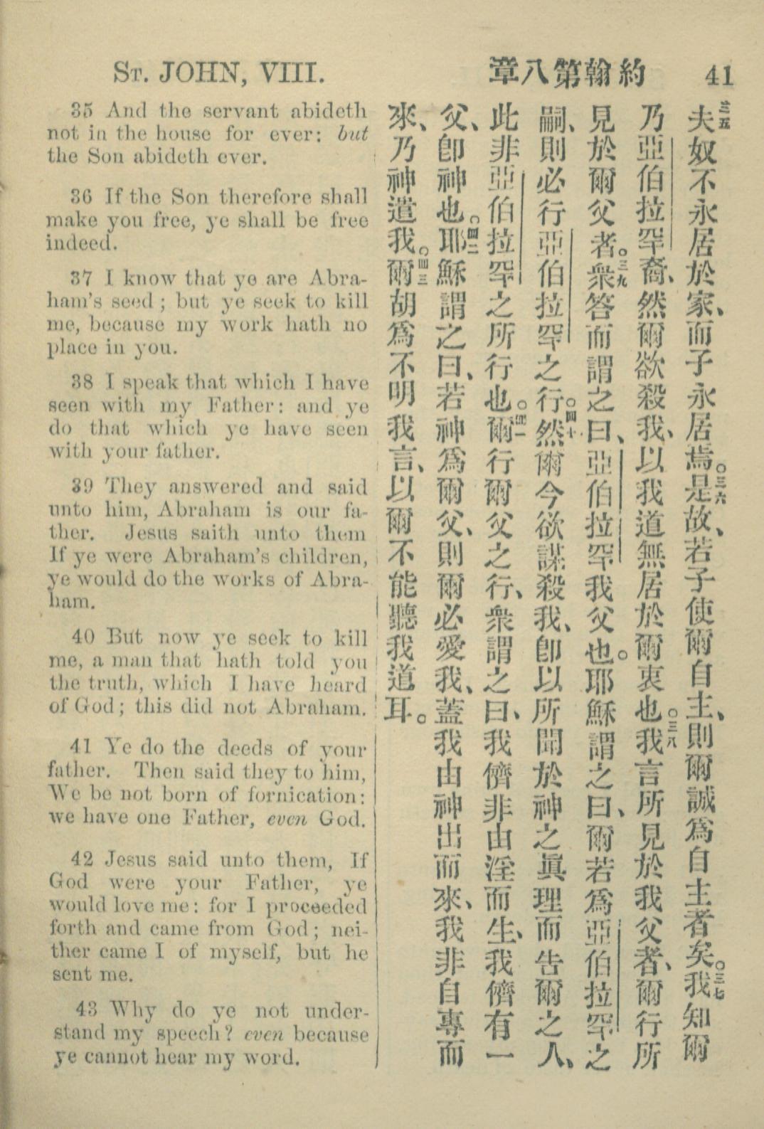 1883年約翰傳福音書 約翰福音 8 章 35 節到 8 章 43 節
