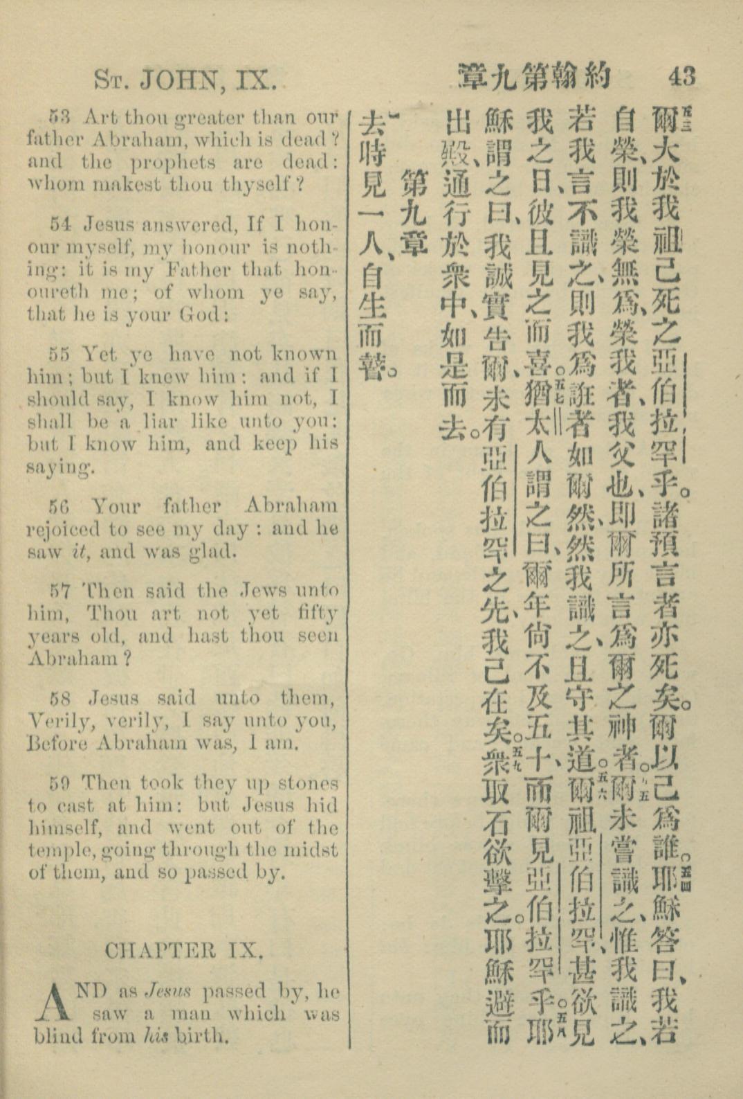 1883年約翰傳福音書 約翰福音 8 章 53 節到 9 章 1 節