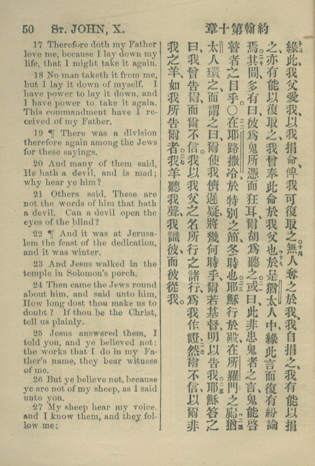 1883年約翰傳福音書 約翰福音 10 章 17 節到 10 章 27 節
