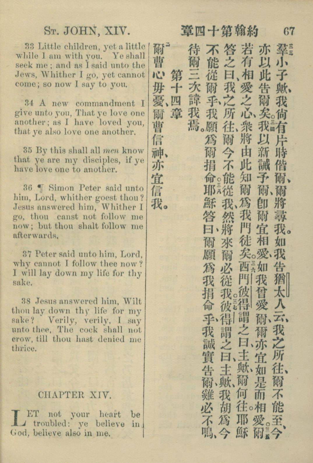 1883年約翰傳福音書 約翰福音 13 章 33 節到 14 章 1 節