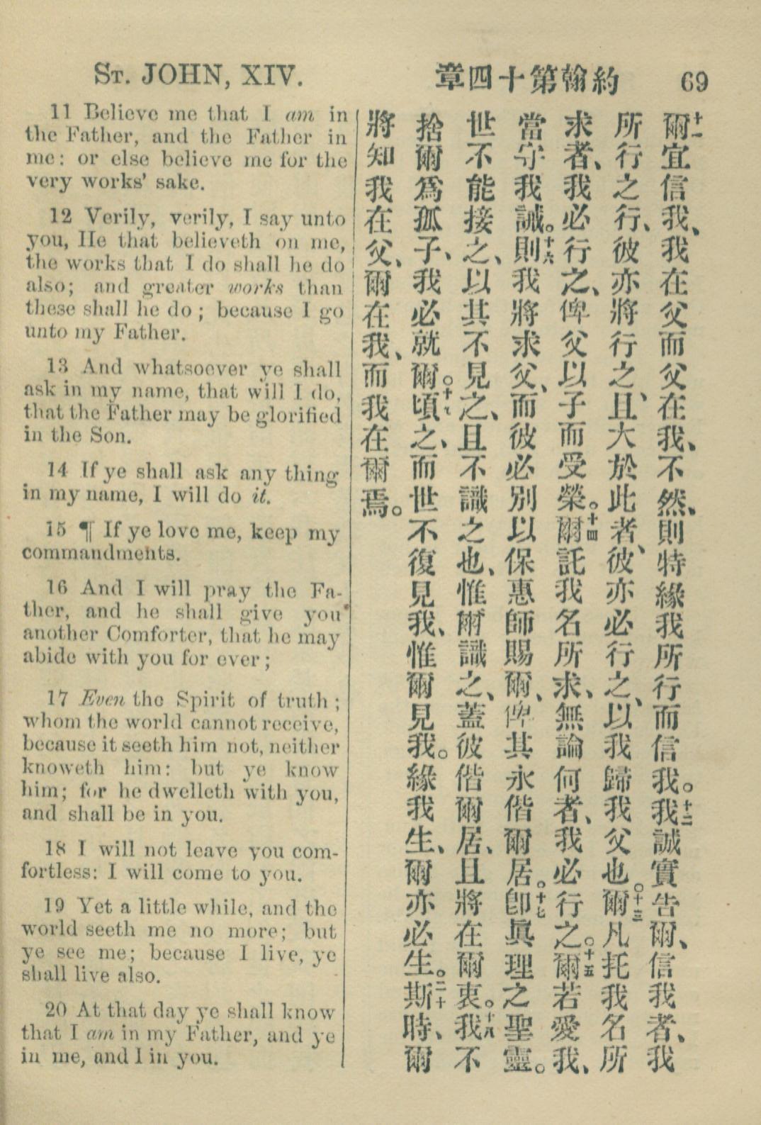 1883年約翰傳福音書 約翰福音 14 章 11 節到 14 章 20 節