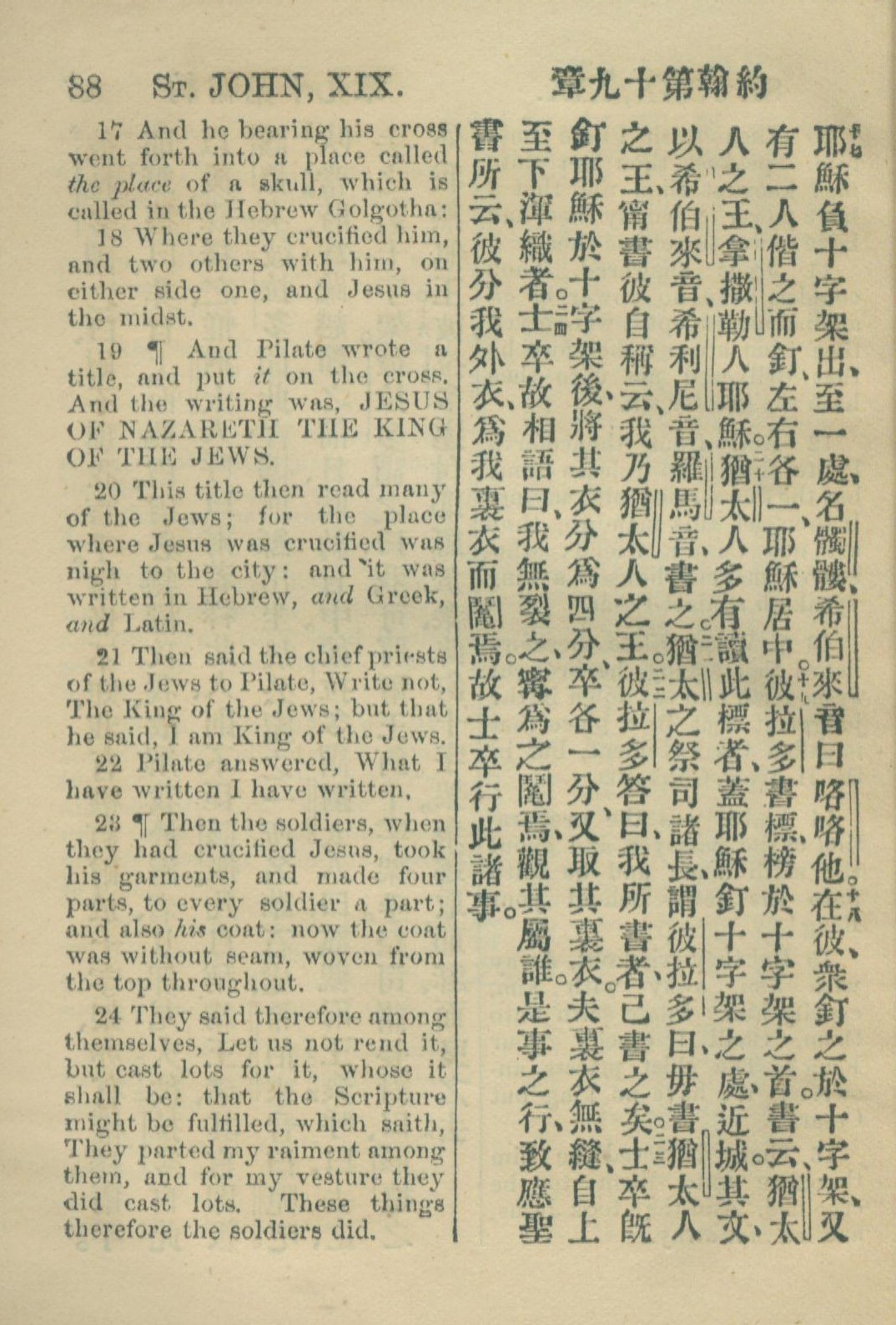 1883年約翰傳福音書 約翰福音 19 章 17 節到 19 章 24 節