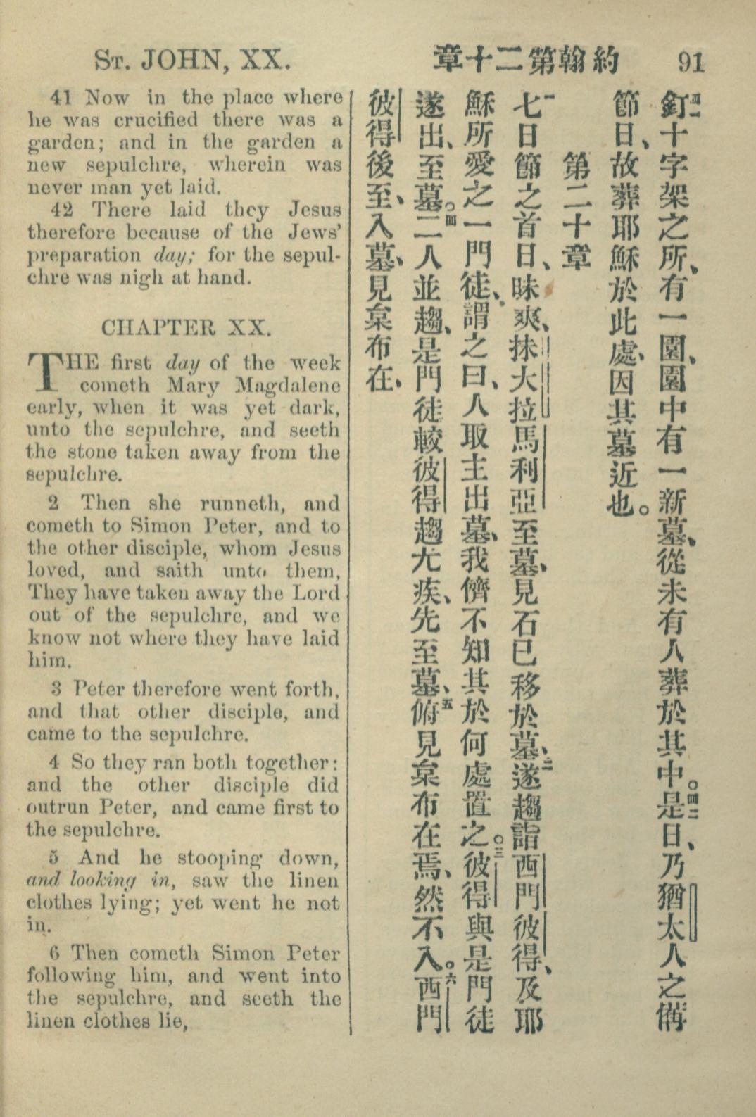 1883年約翰傳福音書 約翰福音 19 章 41 節到 20 章 6 節