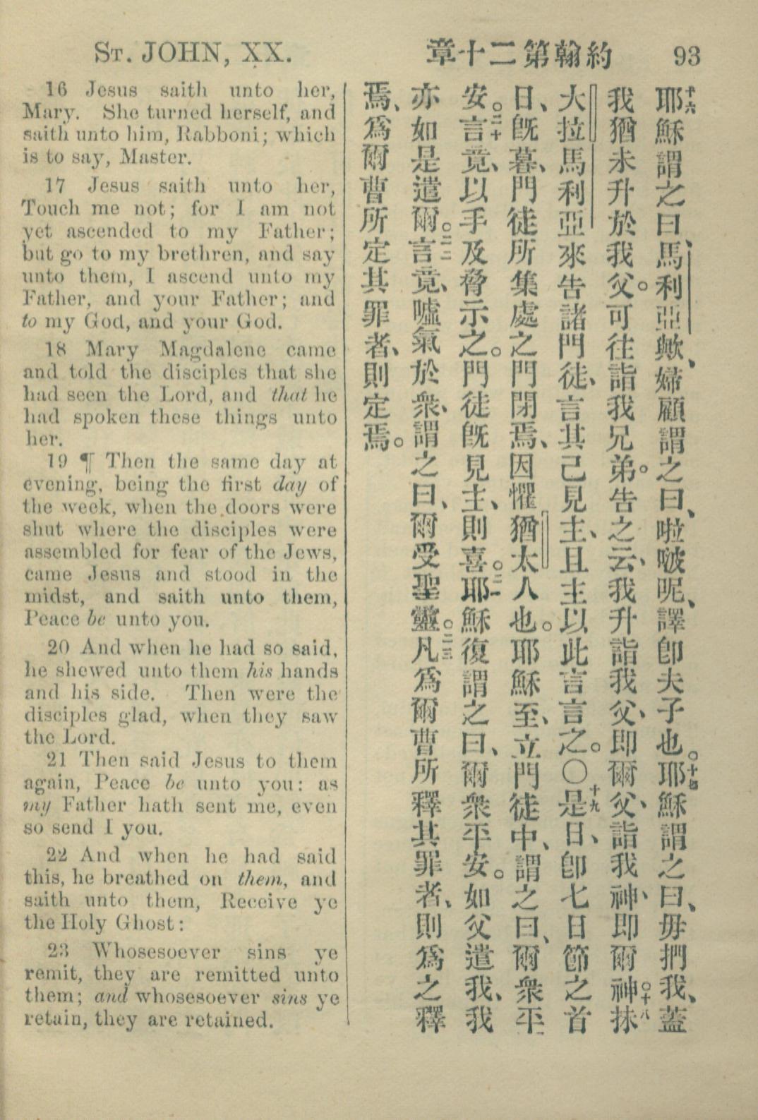 1883年約翰傳福音書 約翰福音 20 章 16 節到 20 章 23 節