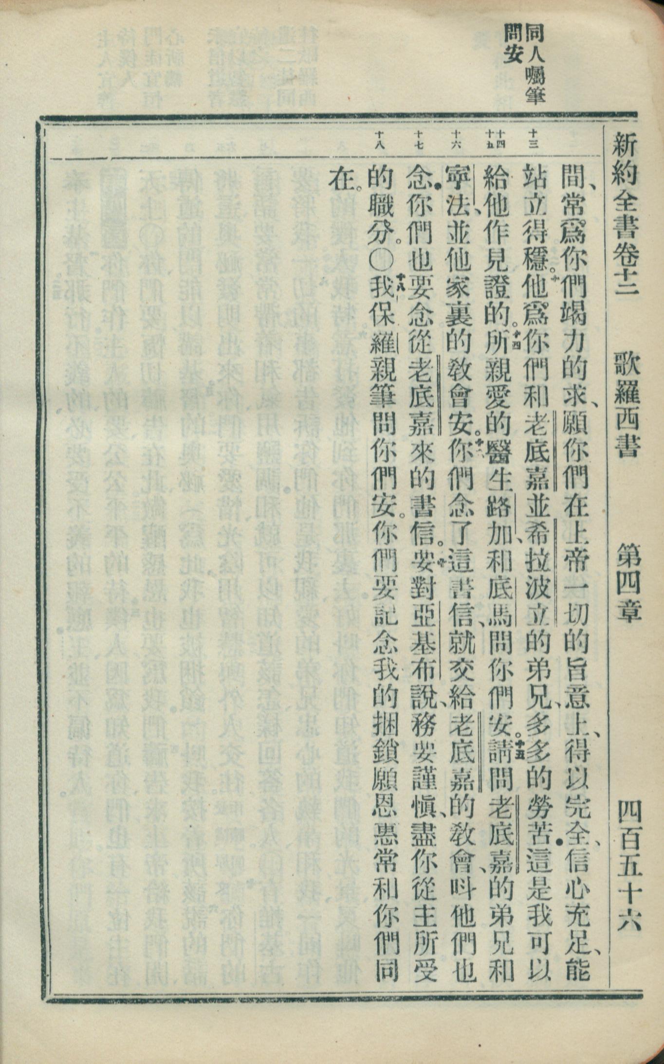 1908年新約全書(官話和合本) 歌羅西書 4 章 13 節到 4 章 18 節