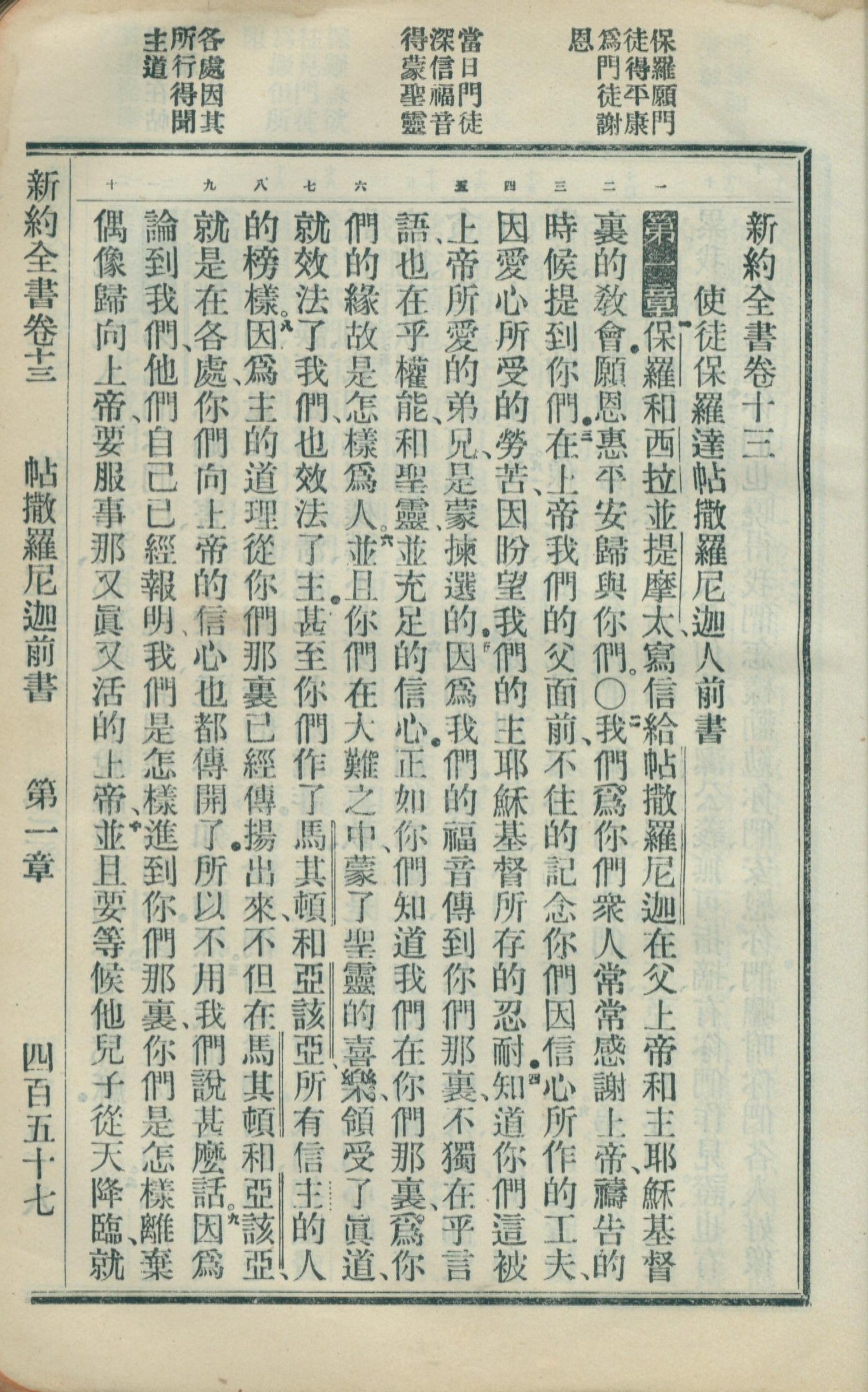1908年新約全書(官話和合本) 帖撒羅尼迦前書 1 章 1 節到 1 章 10 節