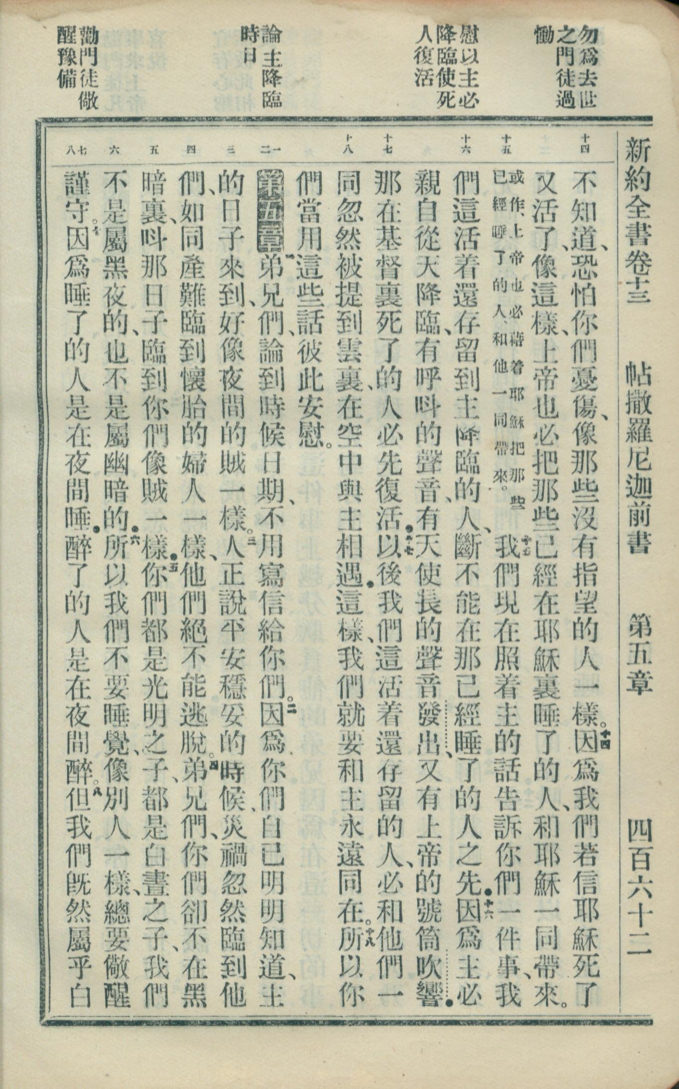 1908年新約全書(官話和合本) 帖撒羅尼迦前書 4 章 14 節到 5 章 8 節