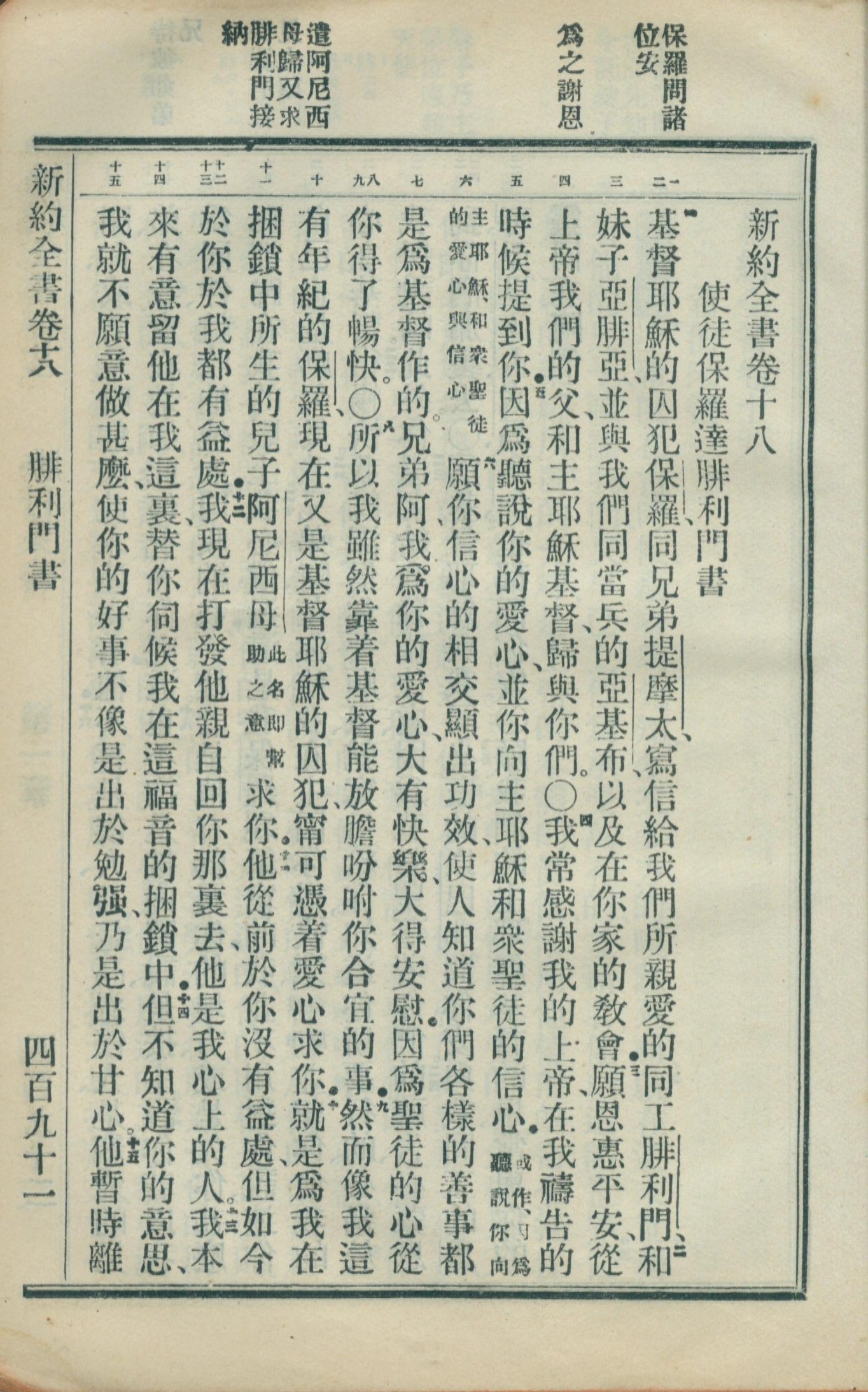 1908年新約全書(官話和合本) 腓利門書 1 章 1 節到 1 章 15 節