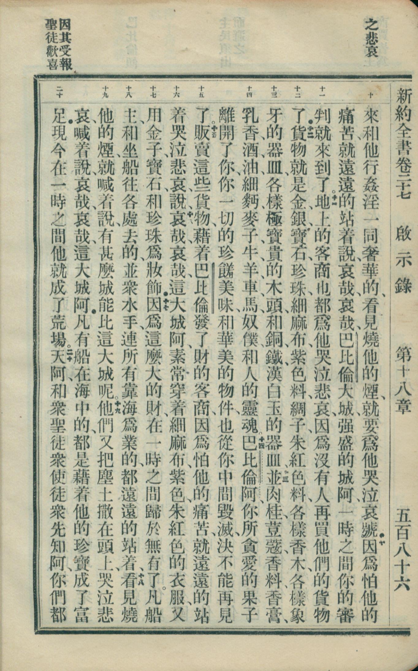 1908年新約全書(官話和合本) 啟示錄 18 章 10 節到 18 章 20 節