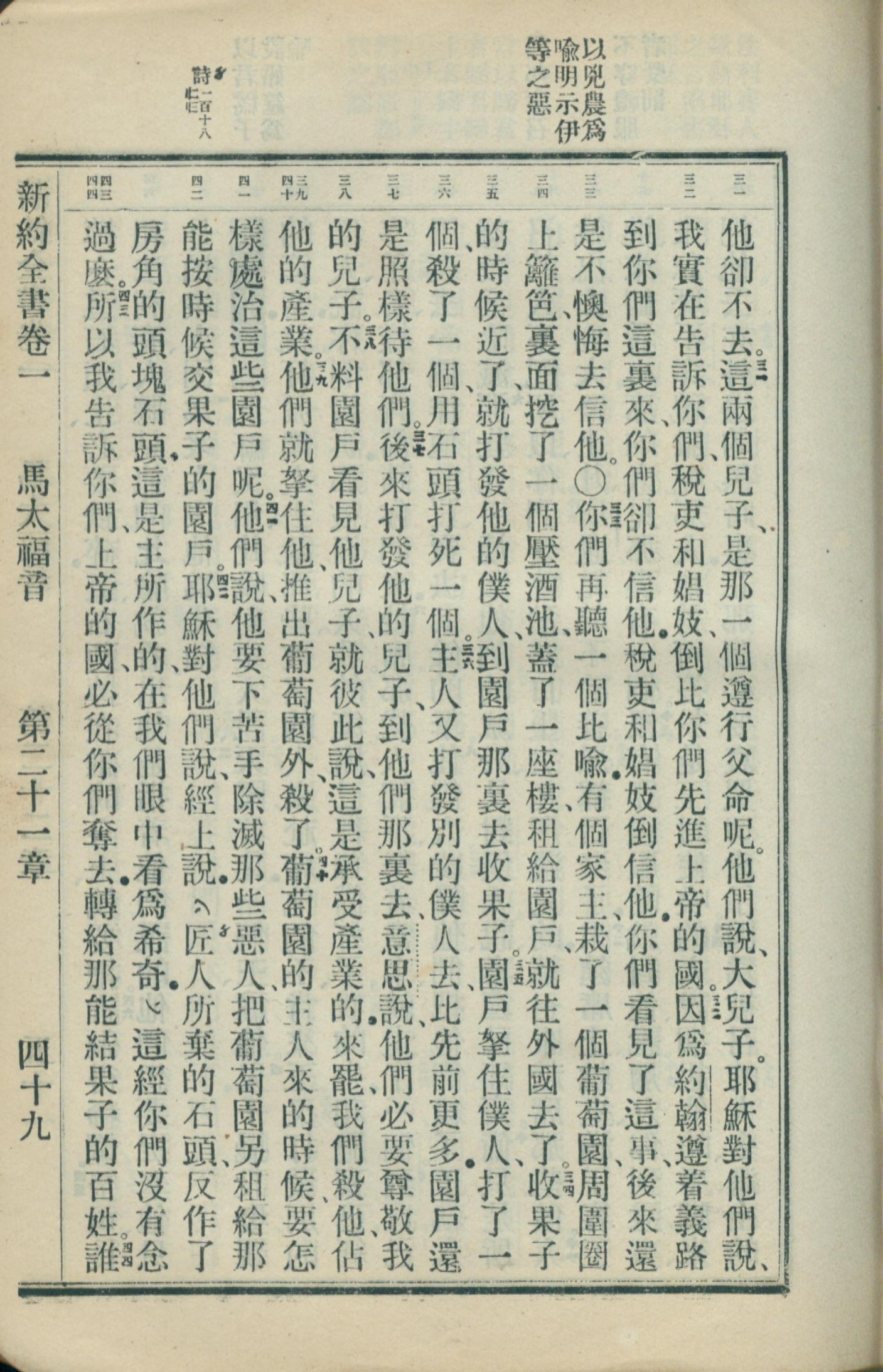 1908年新約全書(官話和合本) 馬太福音 21 章 31 節到 21 章 44 節