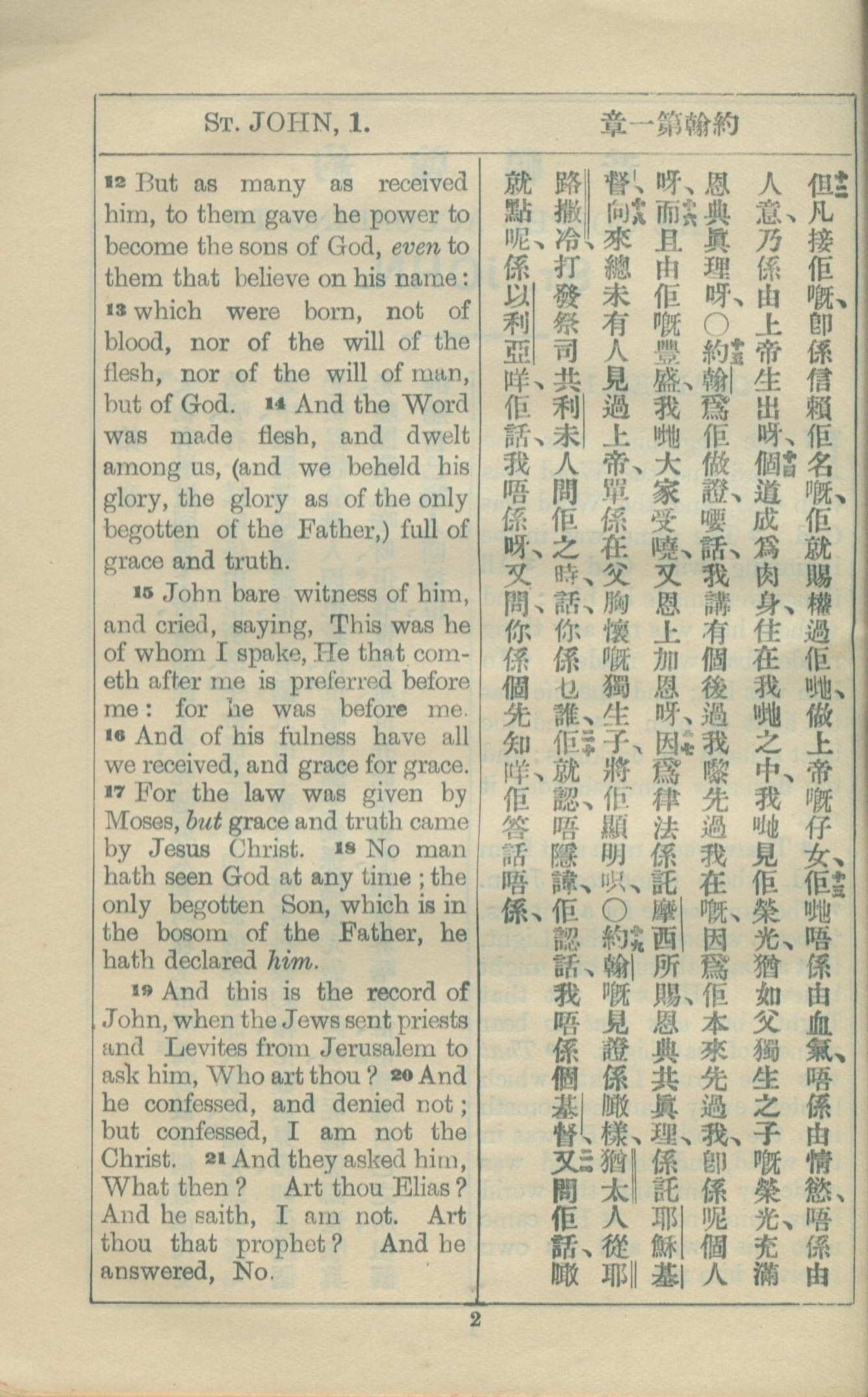 1927年約翰福音中西字 約翰福音 1 章 12 節到 1 章 21 節