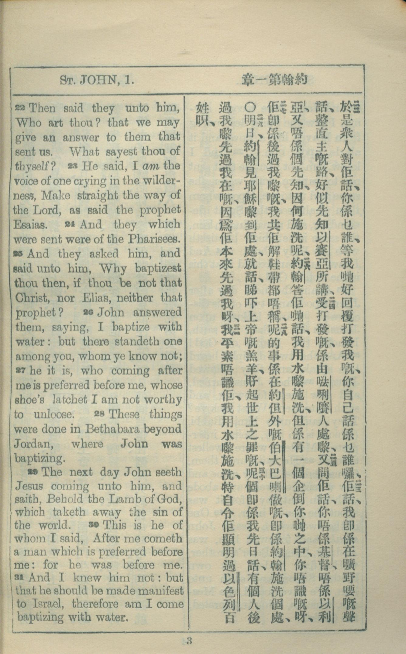 1927年約翰福音中西字 約翰福音 1 章 22 節到 1 章 31 節