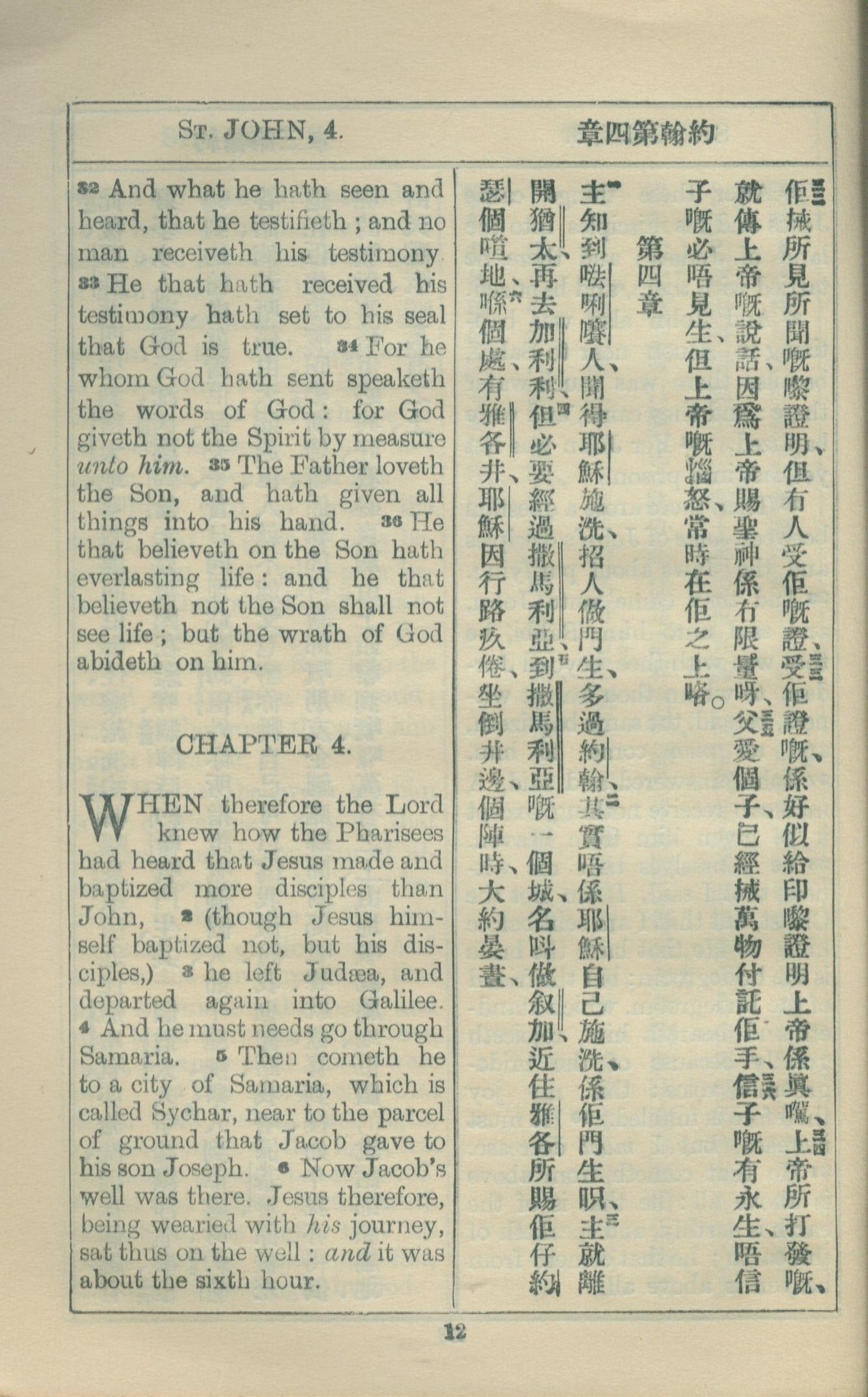 1927年約翰福音中西字 約翰福音 3 章 32 節到 4 章 6 節