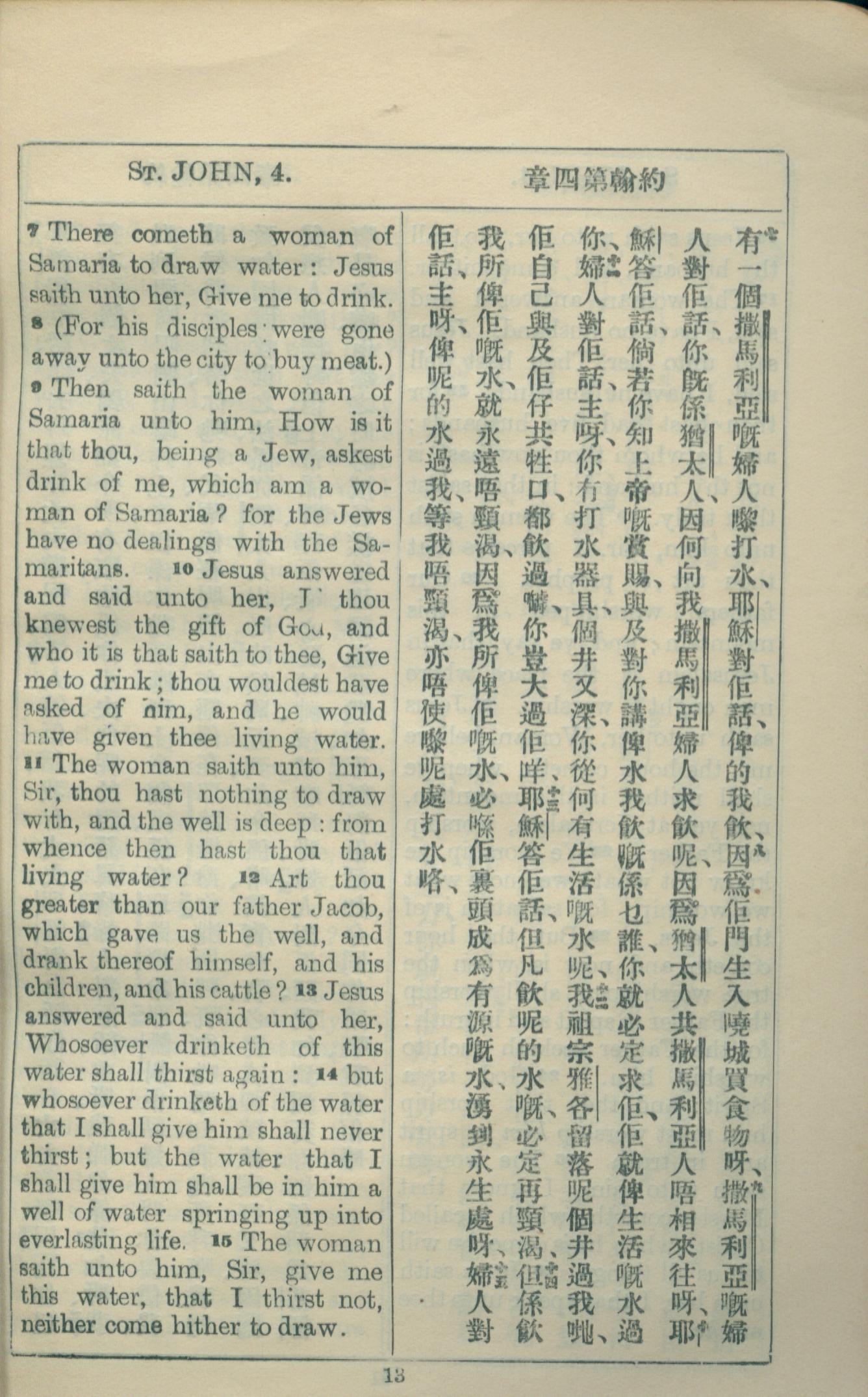 1927年約翰福音中西字 約翰福音 4 章 7 節到 4 章 15 節