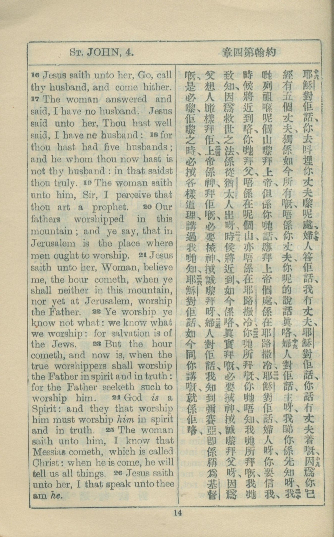 1927年約翰福音中西字 約翰福音 4 章 16 節到 4 章 26 節