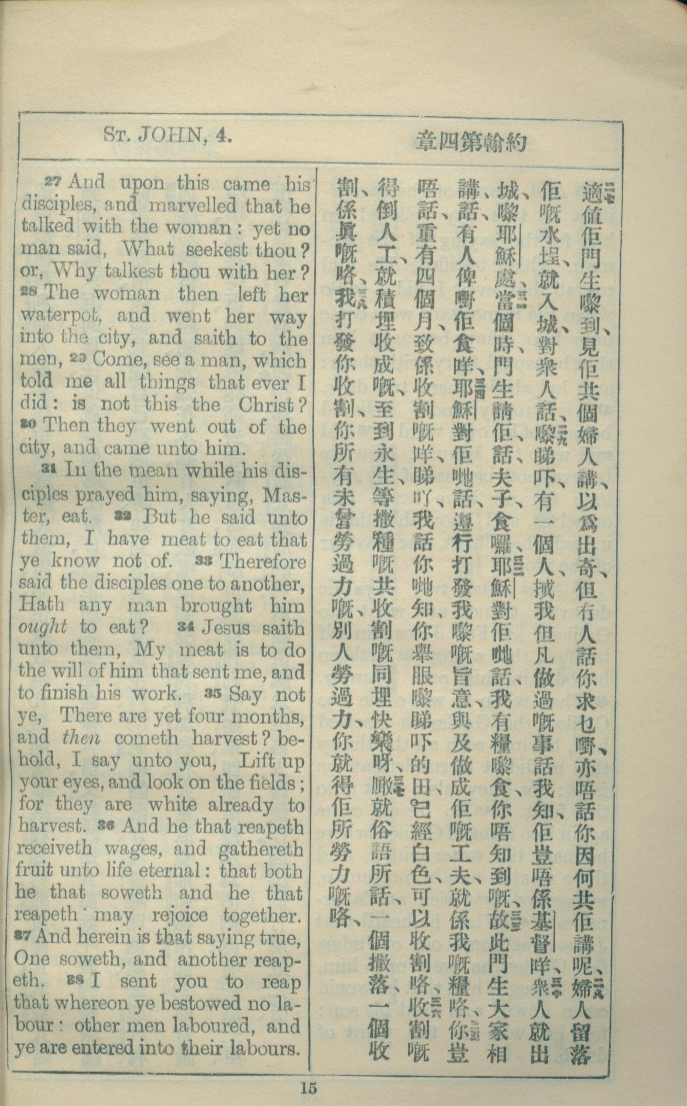 1927年約翰福音中西字 約翰福音 4 章 27 節到 4 章 38 節