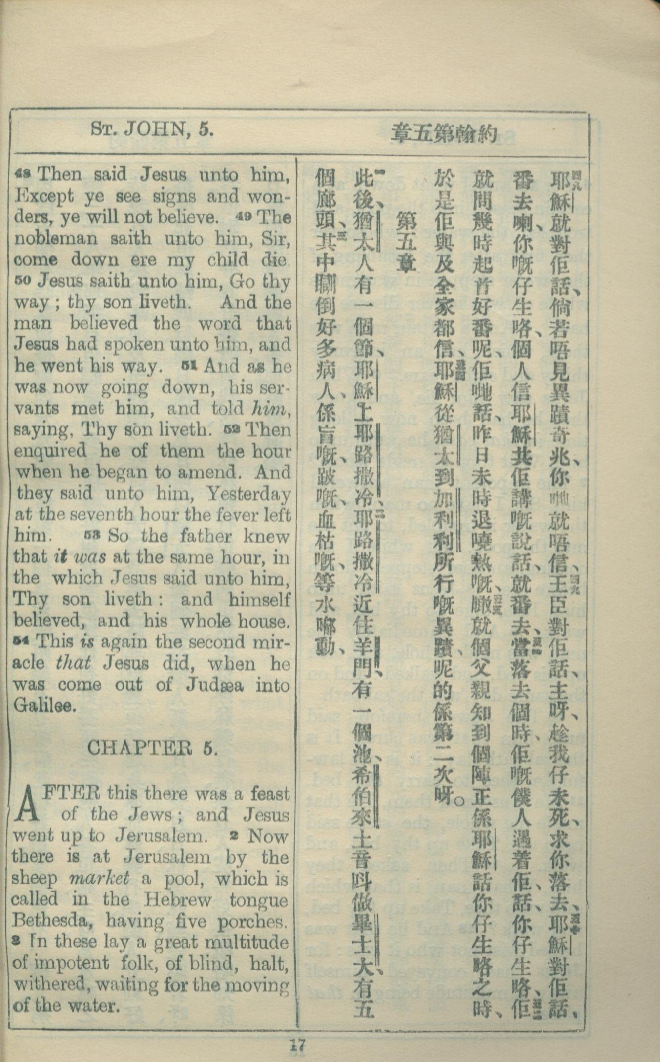 1927年約翰福音中西字 約翰福音 4 章 48 節到 5 章 3 節
