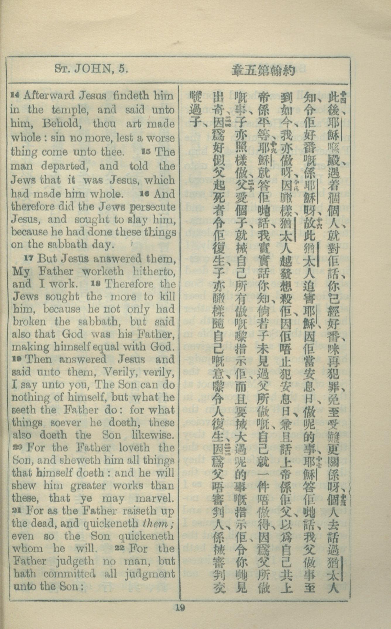 1927年約翰福音中西字 約翰福音 5 章 14 節到 5 章 22 節