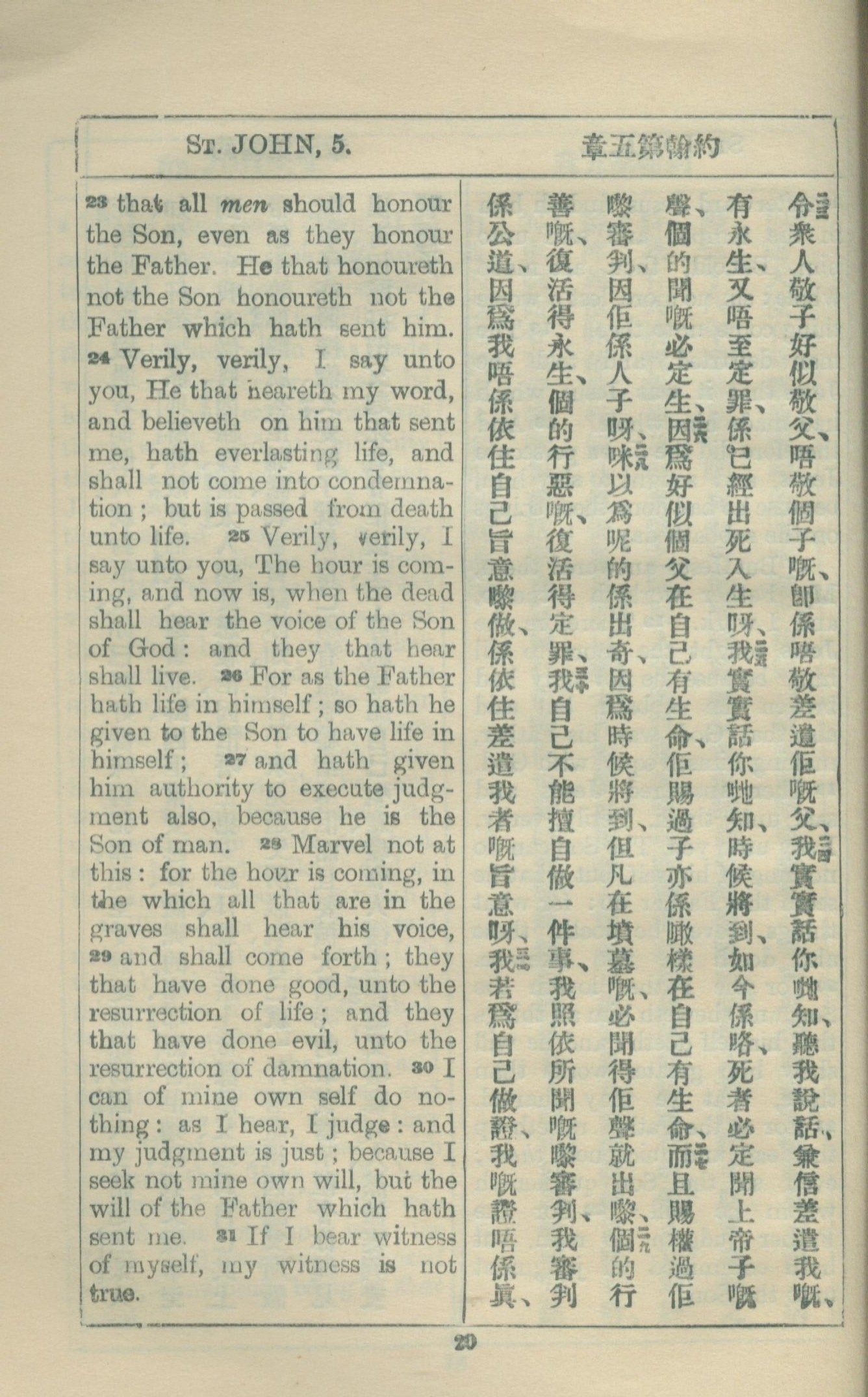 1927年約翰福音中西字 約翰福音 5 章 23 節到 5 章 31 節