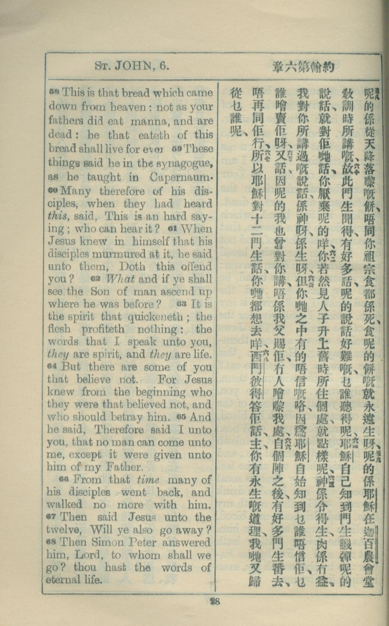 1927年約翰福音中西字 約翰福音 6 章 58 節到 6 章 68 節