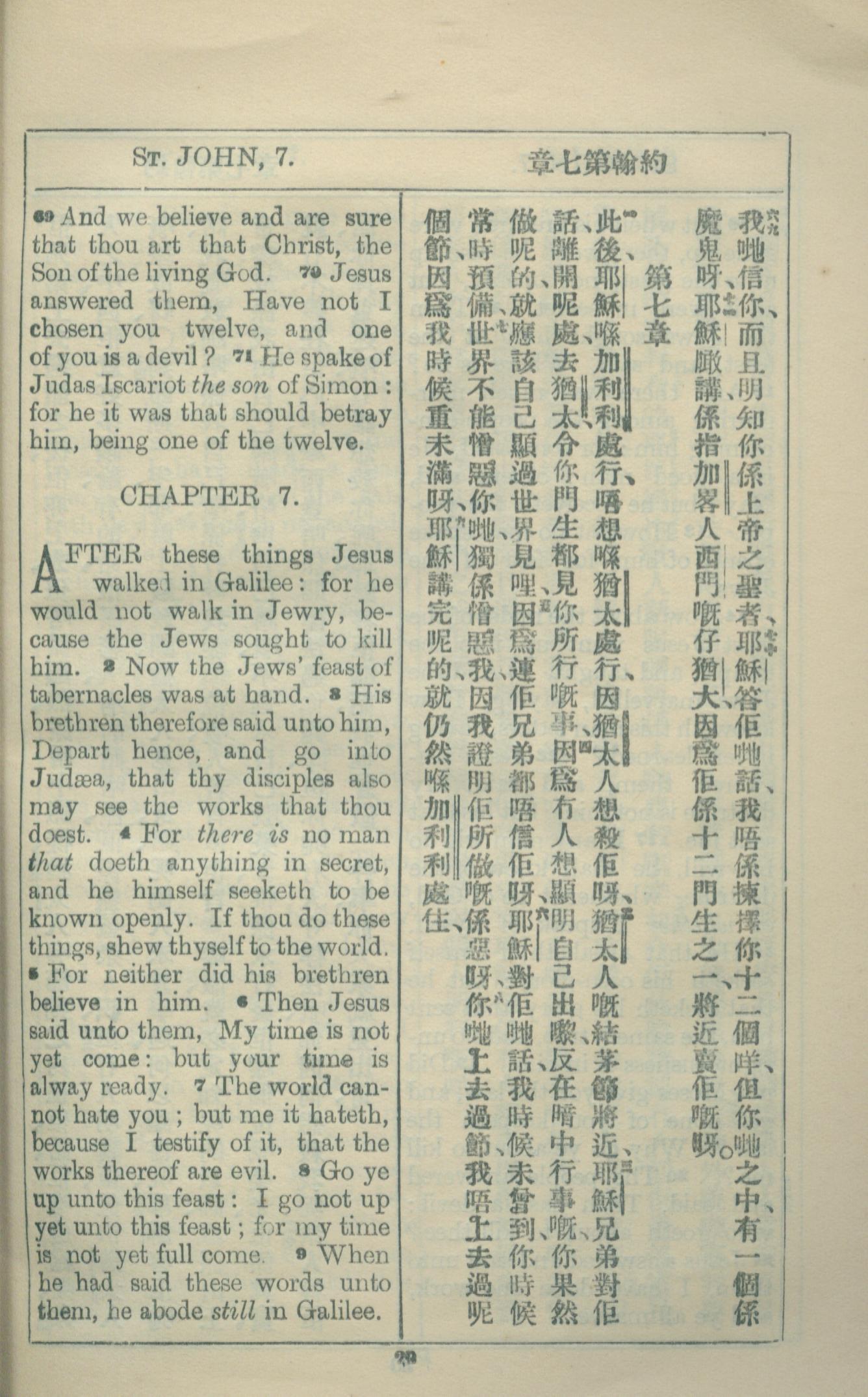 1927年約翰福音中西字 約翰福音 6 章 69 節到 7 章 9 節