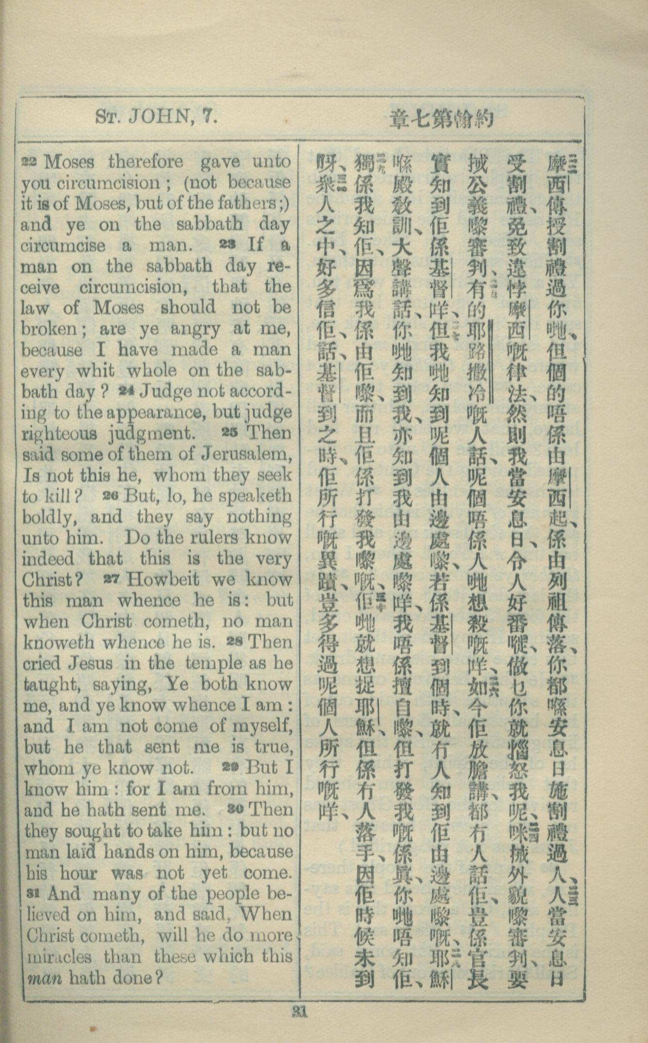 1927年約翰福音中西字 約翰福音 7 章 22 節到 7 章 31 節