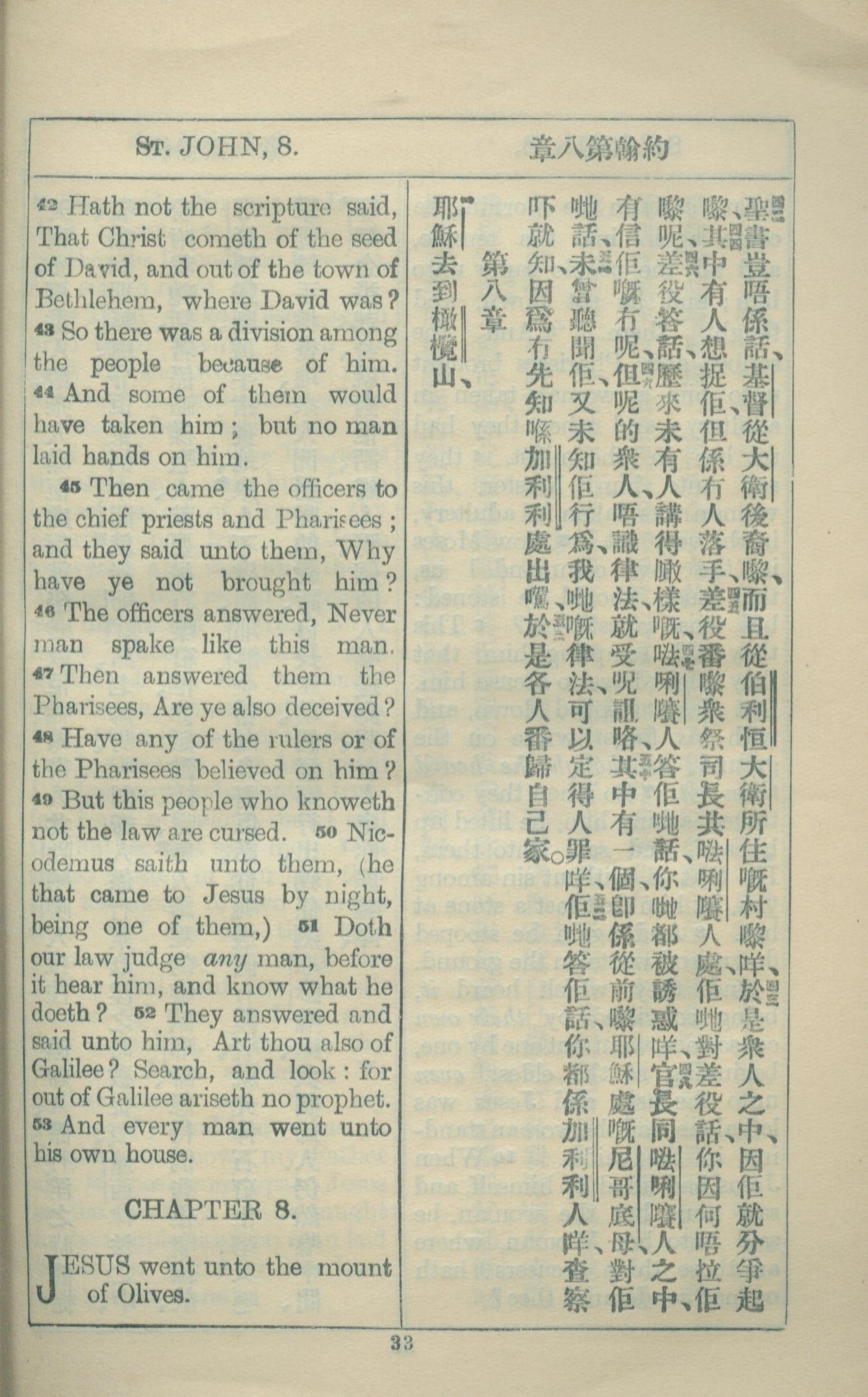 1927年約翰福音中西字 約翰福音 7 章 42 節到 8 章 1 節