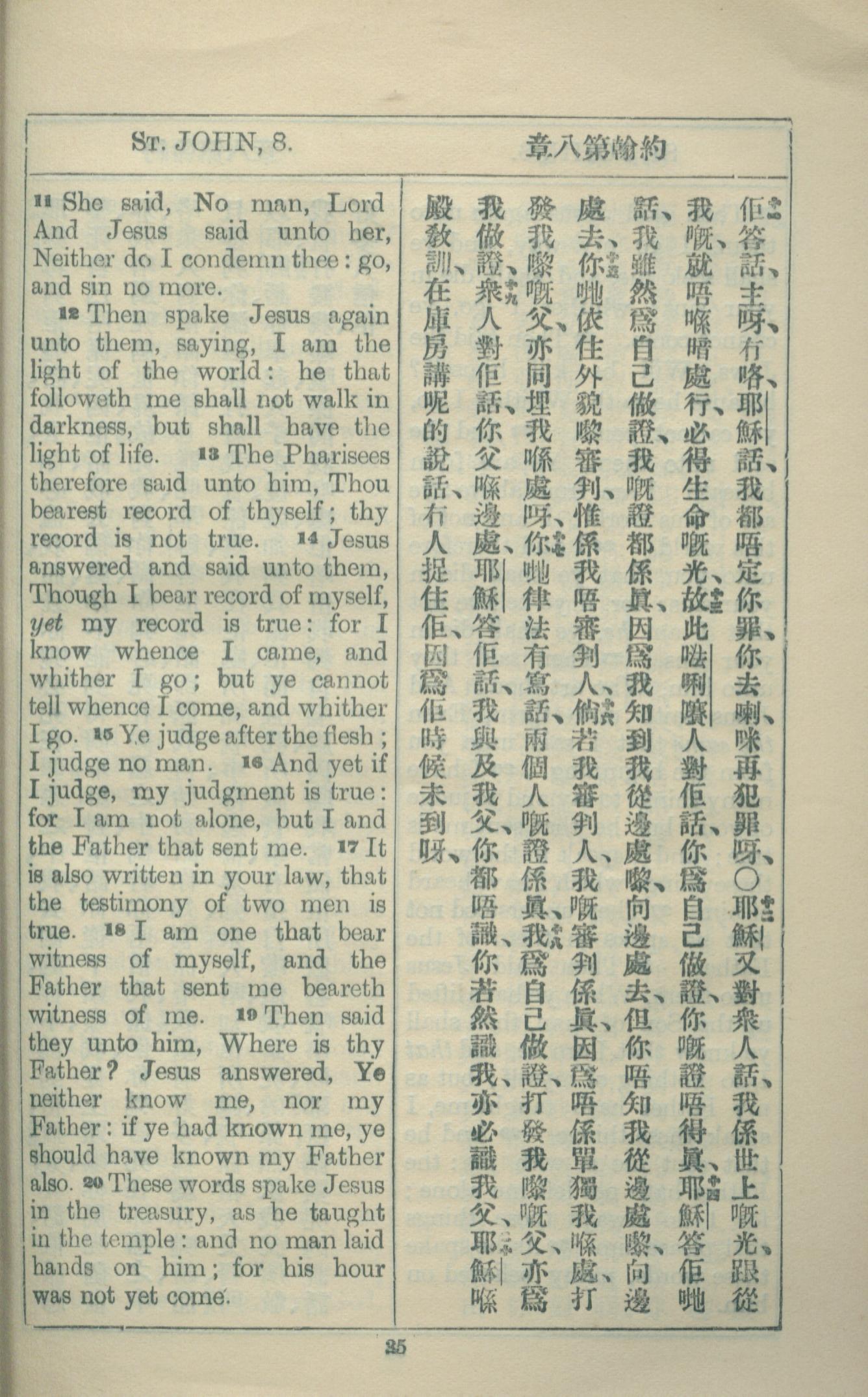 1927年約翰福音中西字 約翰福音 8 章 11 節到 8 章 20 節