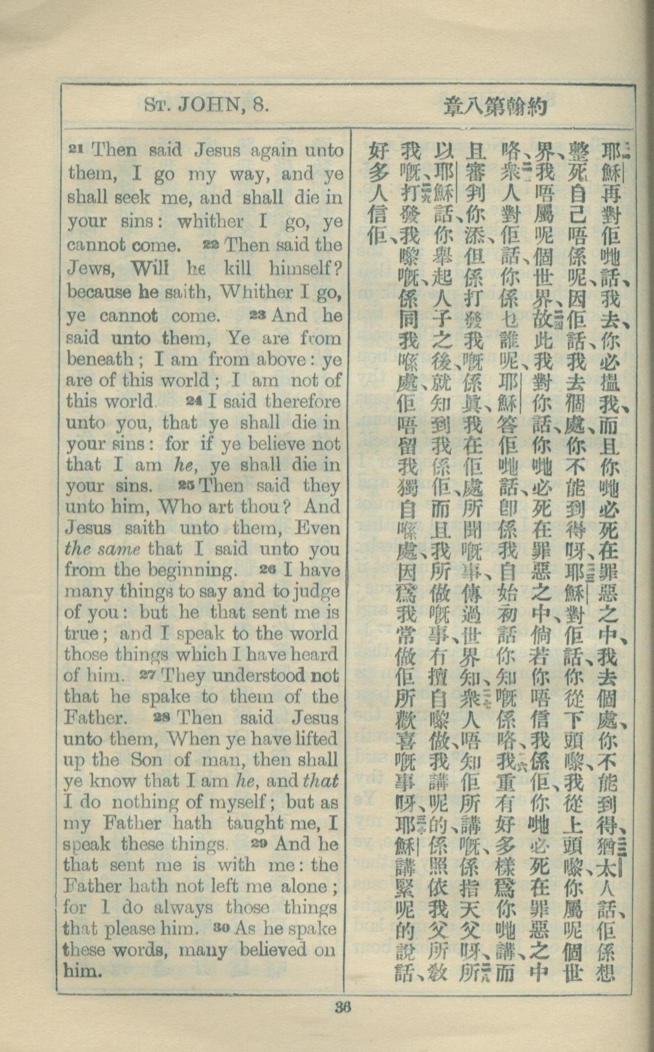 1927年約翰福音中西字 約翰福音 8 章 21 節到 8 章 30 節