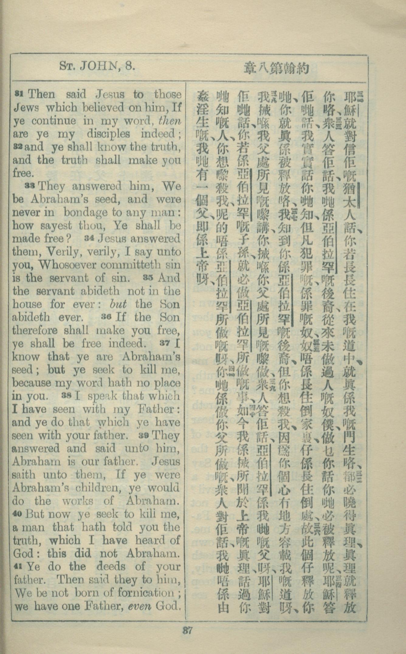 1927年約翰福音中西字 約翰福音 8 章 31 節到 8 章 41 節
