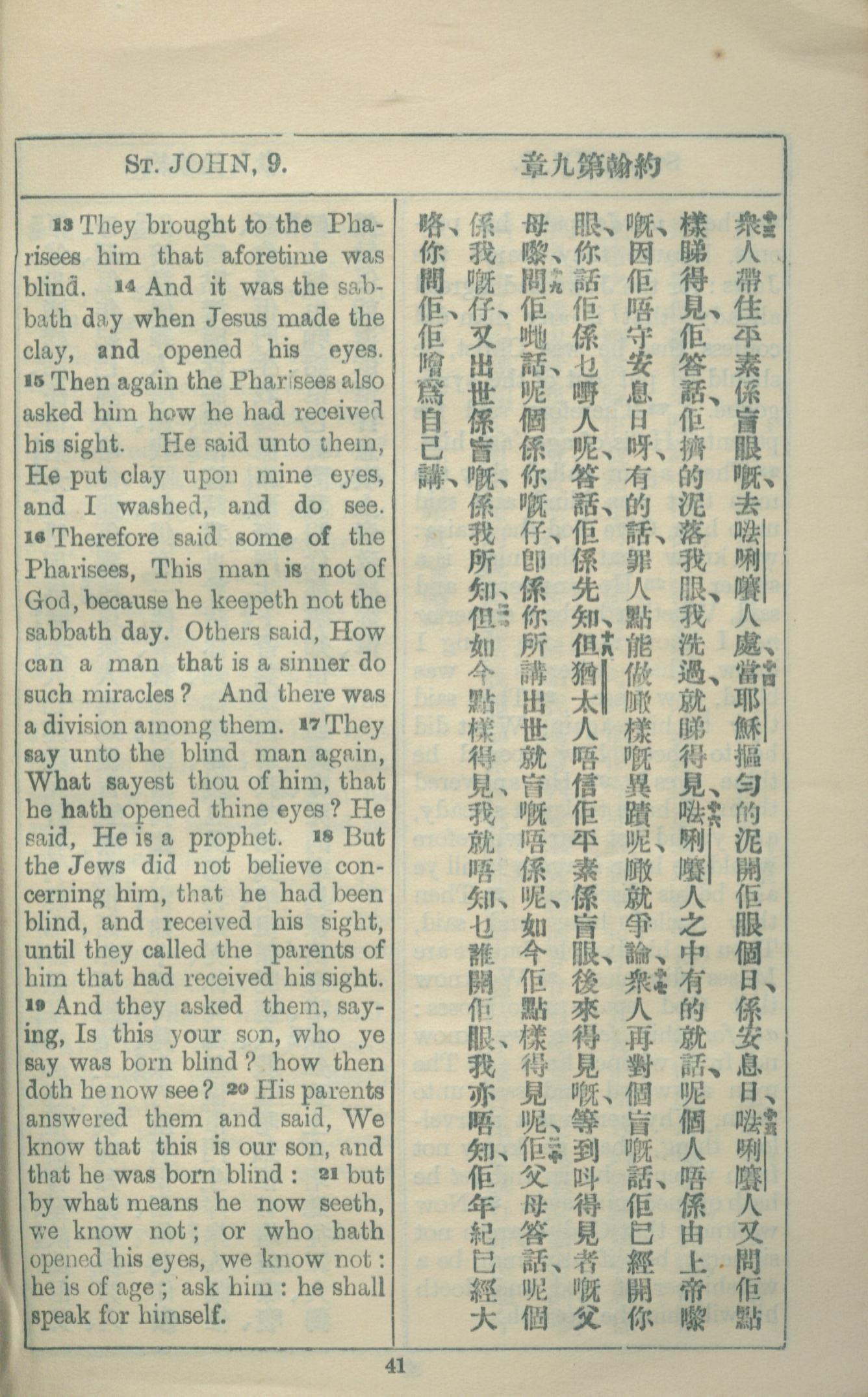 1927年約翰福音中西字 約翰福音 9 章 13 節到 9 章 21 節