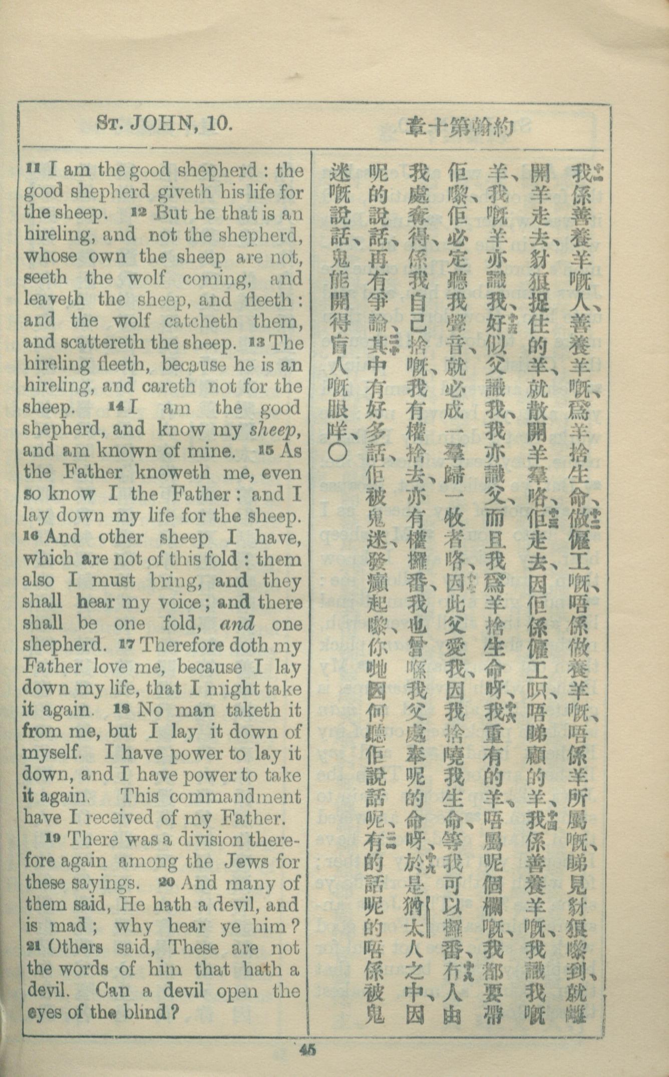1927年約翰福音中西字 約翰福音 10 章 11 節到 10 章 21 節
