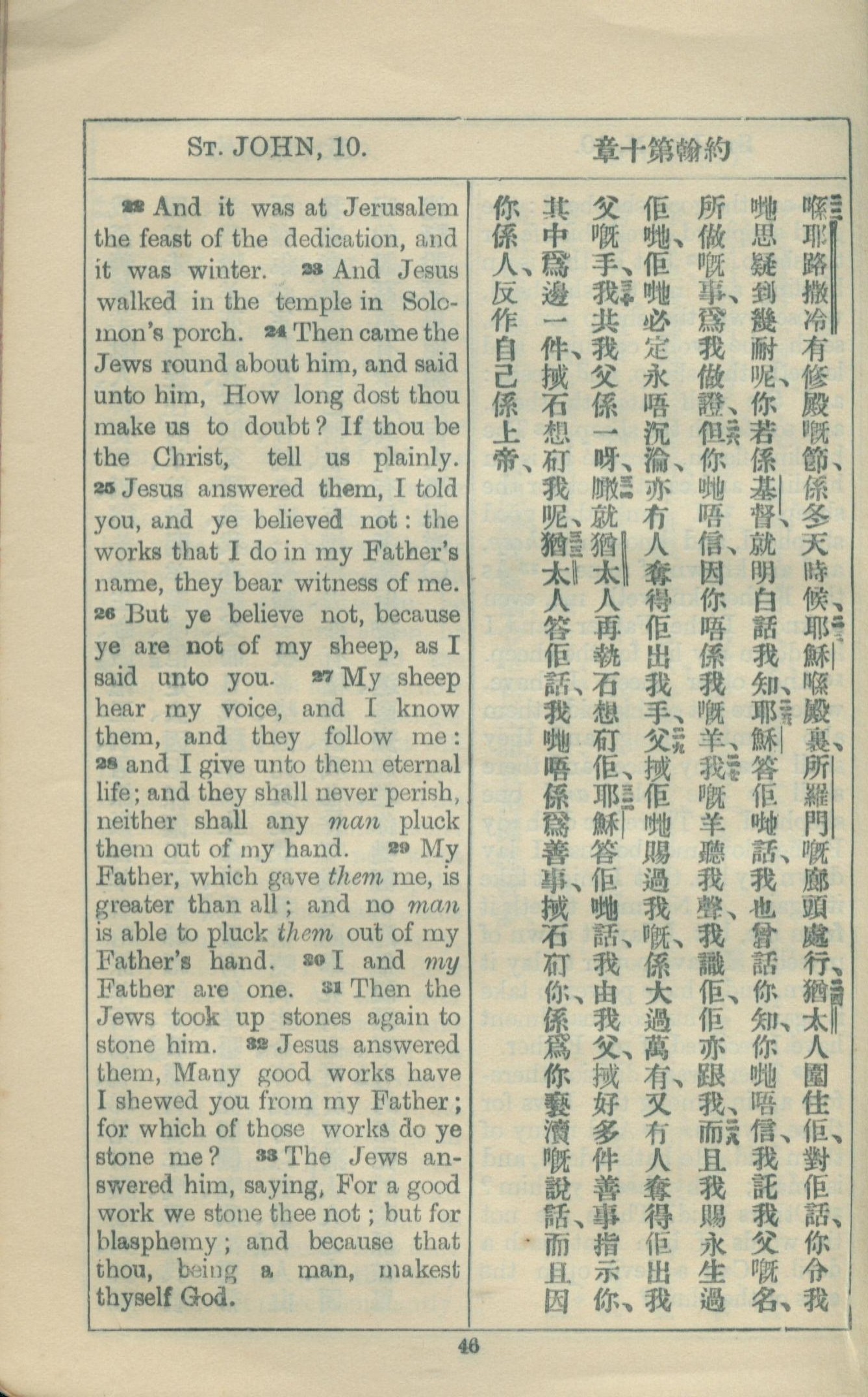 1927年約翰福音中西字 約翰福音 10 章 22 節到 10 章 33 節