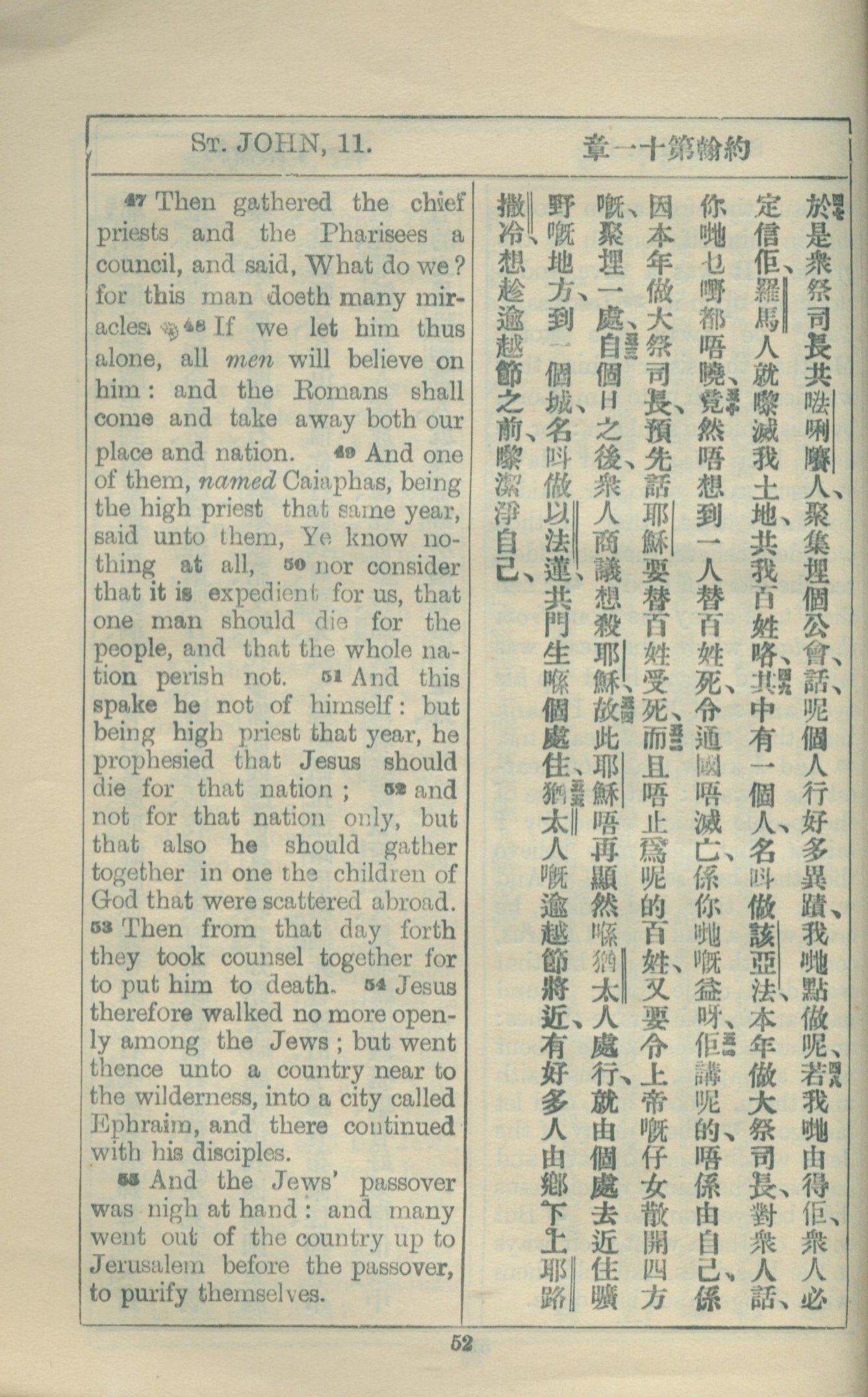 1927年約翰福音中西字 約翰福音 11 章 47 節到 11 章 55 節