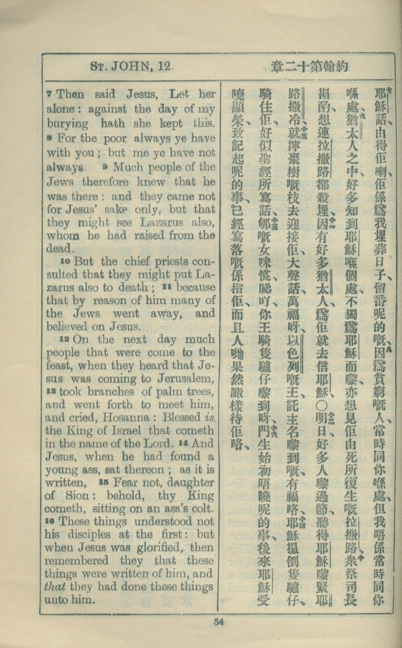 1927年約翰福音中西字 約翰福音 12 章 7 節到 12 章 16 節