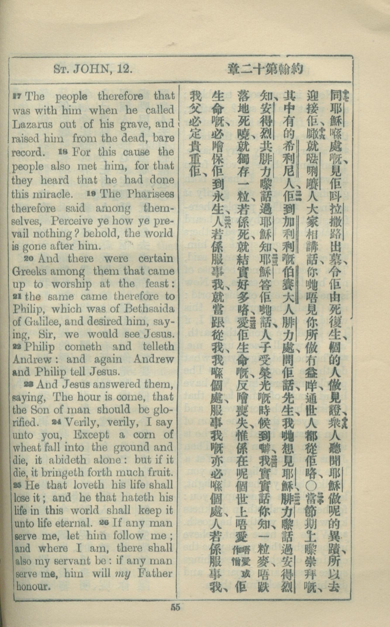 1927年約翰福音中西字 約翰福音 12 章 17 節到 12 章 26 節